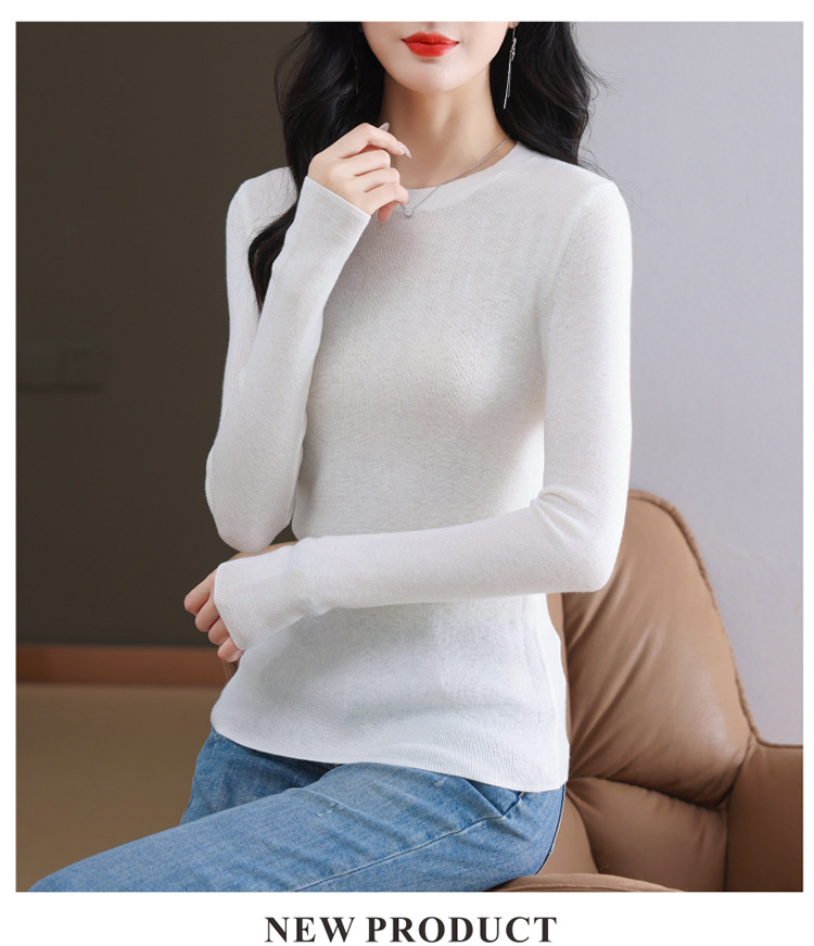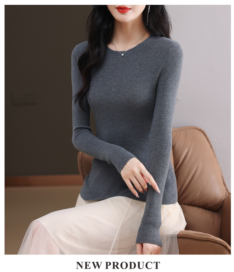 양모베이스 스웨터 새로운 인테리어 슬림 핏 솔리드 컬러 스트레치 긴 소매 스웨터 2024 패션 올 매치 탑스토어 가기