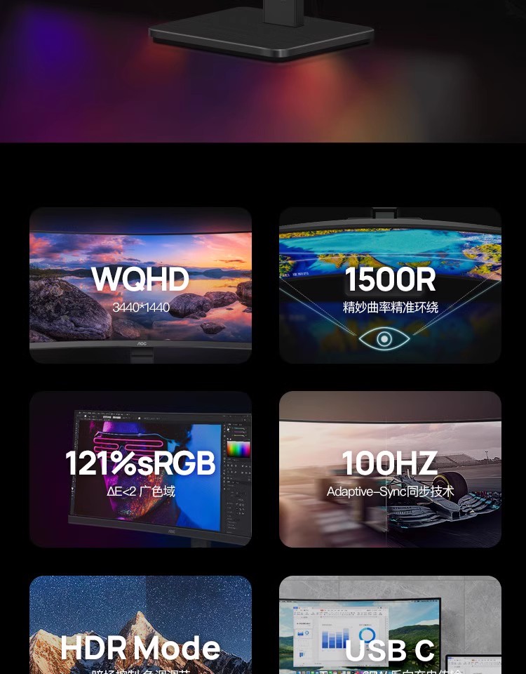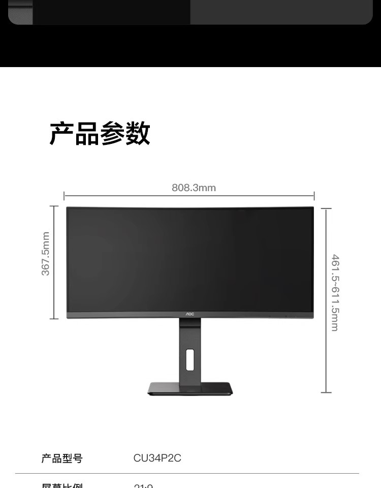 AOC CU34P2C 34 "준 4K 곡선 표면 디스플레이 TypeC 비즈니스 디자인 헤어 테일 화면 100HZ 화면스토어 가기