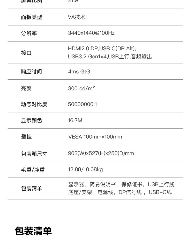 • CU34P2C/곡면/ 34inch /4K/100HZ/-공식 표준 구성