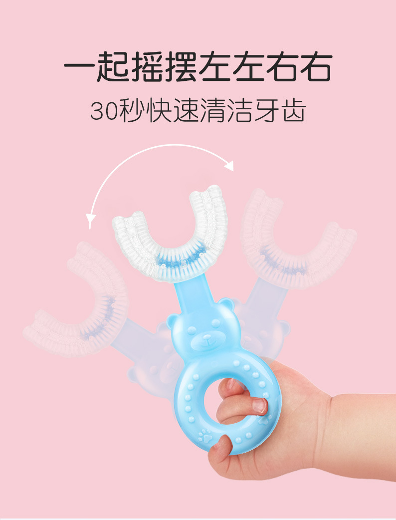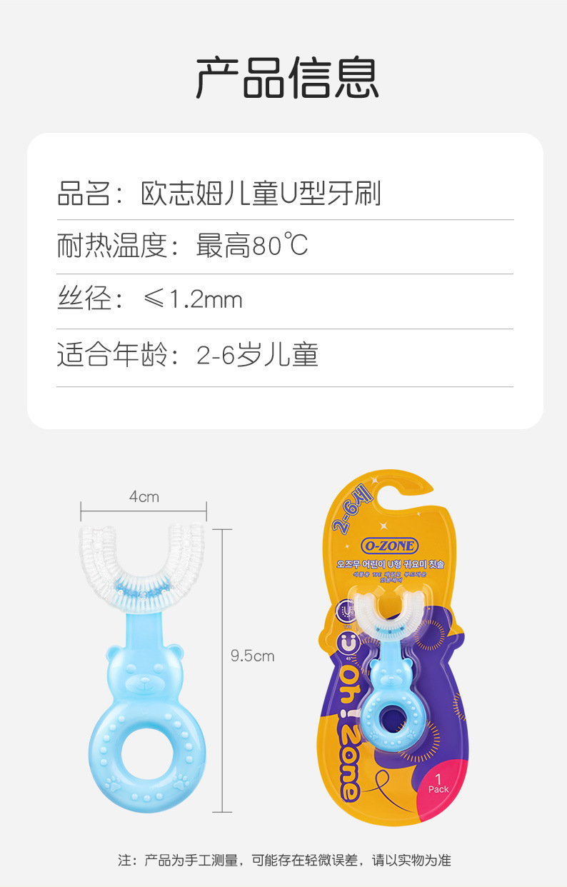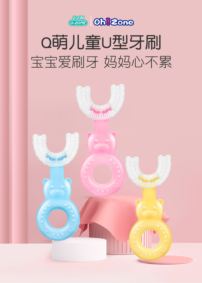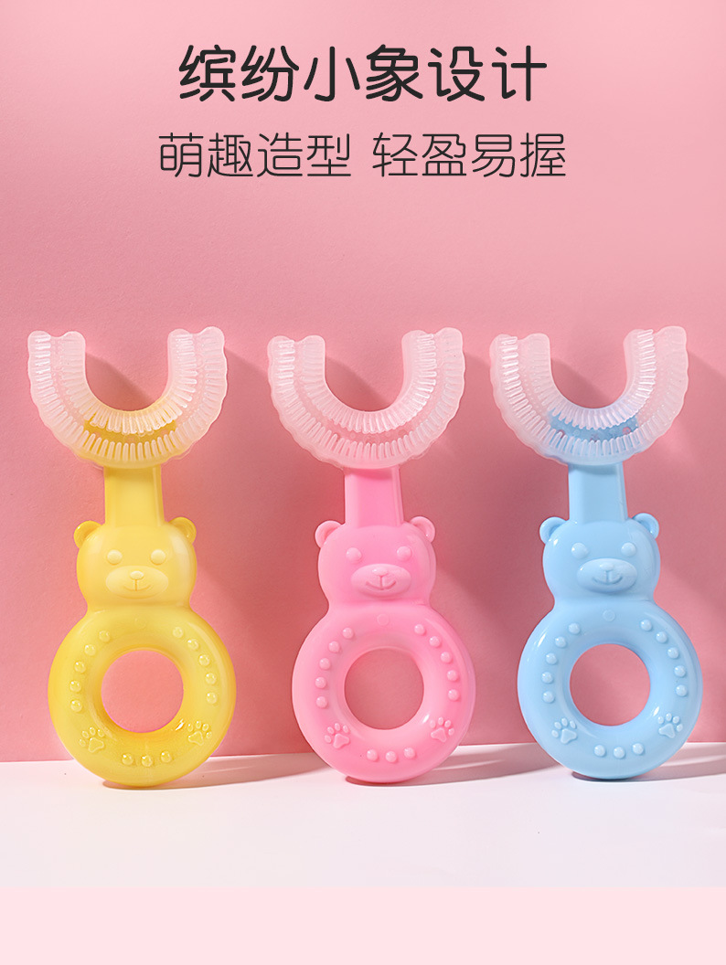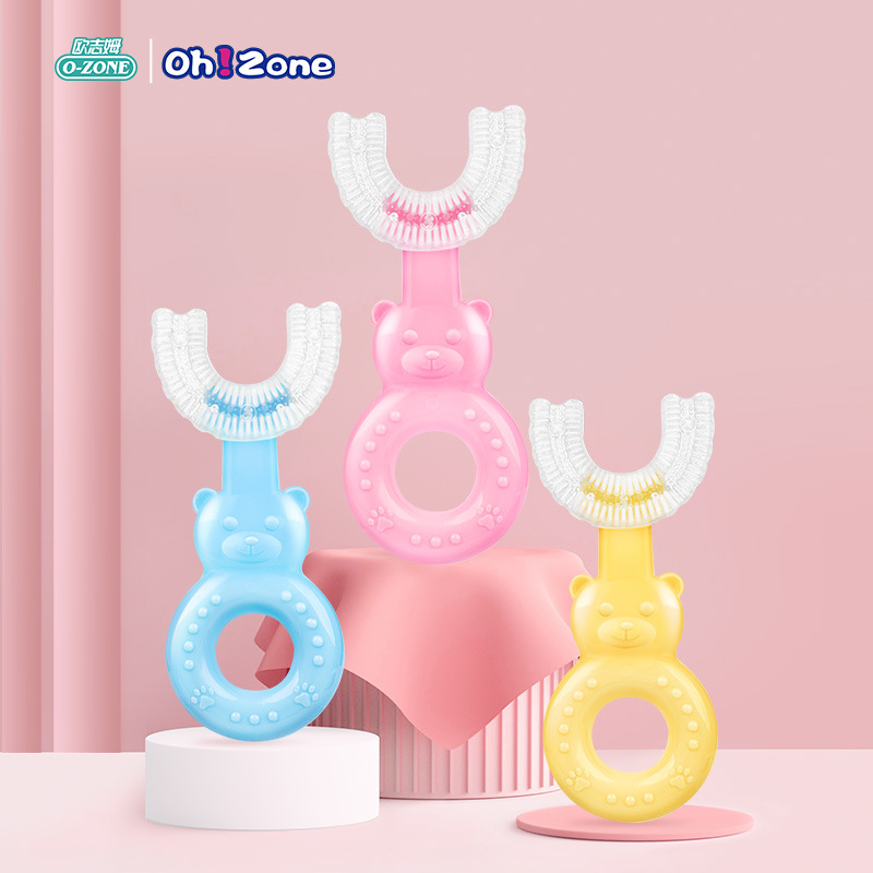 오지임 어린이용 U자형 귀여운 칫솔 2-6세용 1개입 실리콘 칫솔모 고온 소독 가능 제조업체 도매스토어 가기
