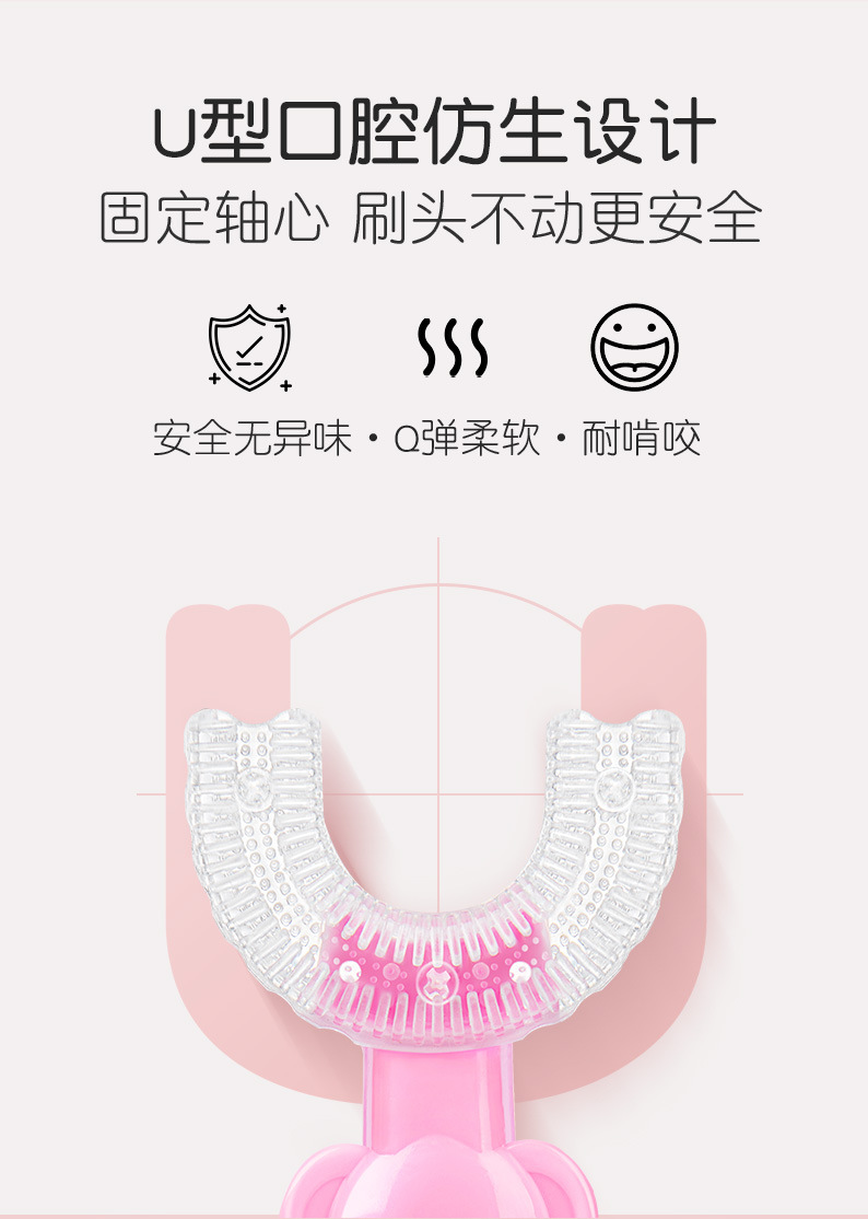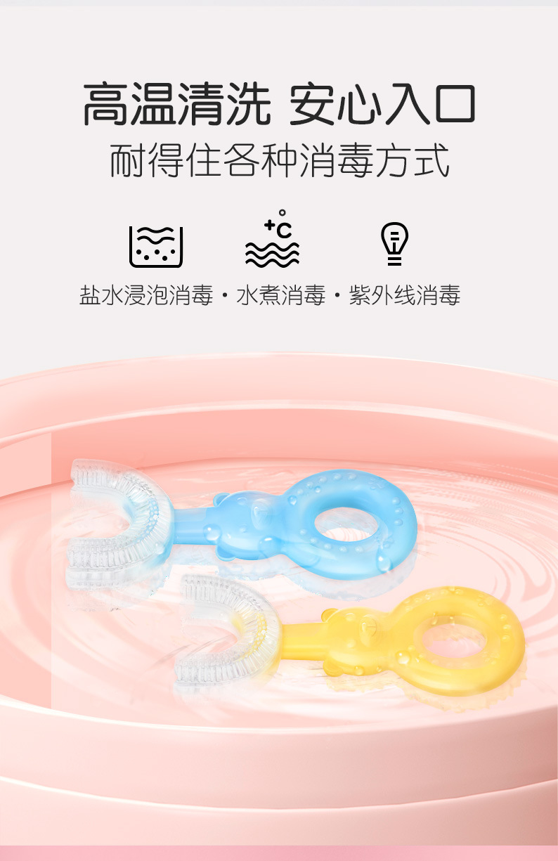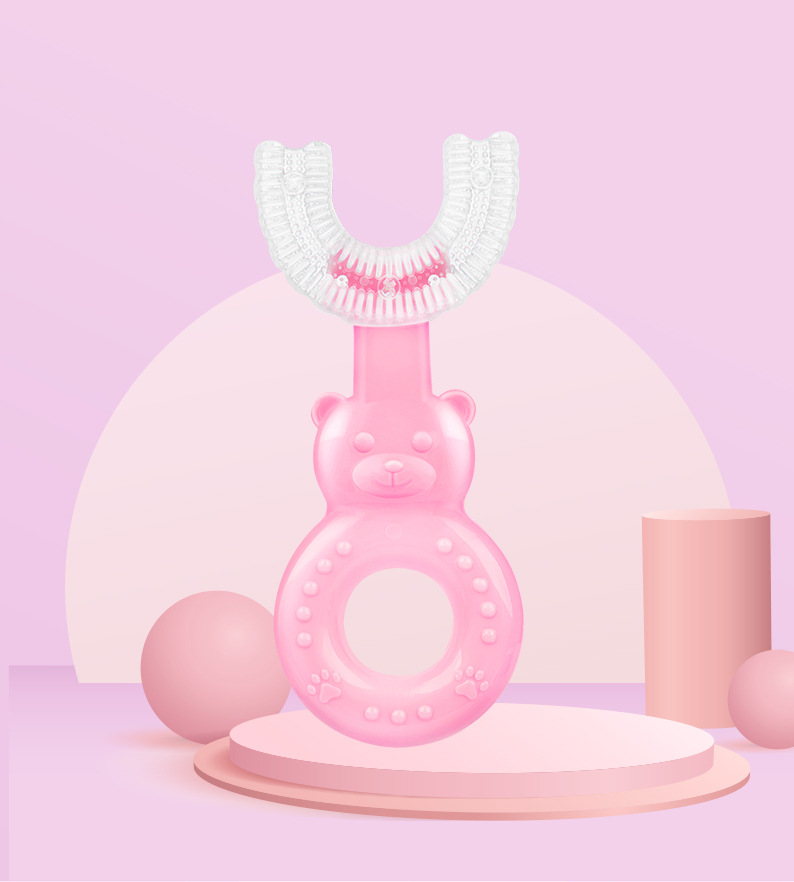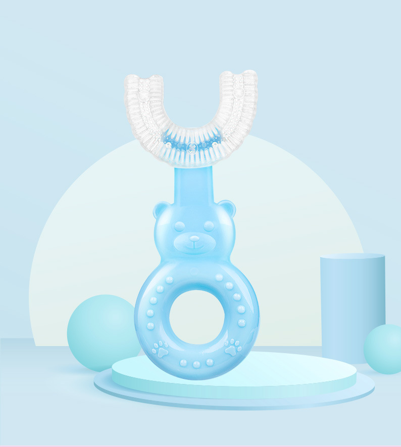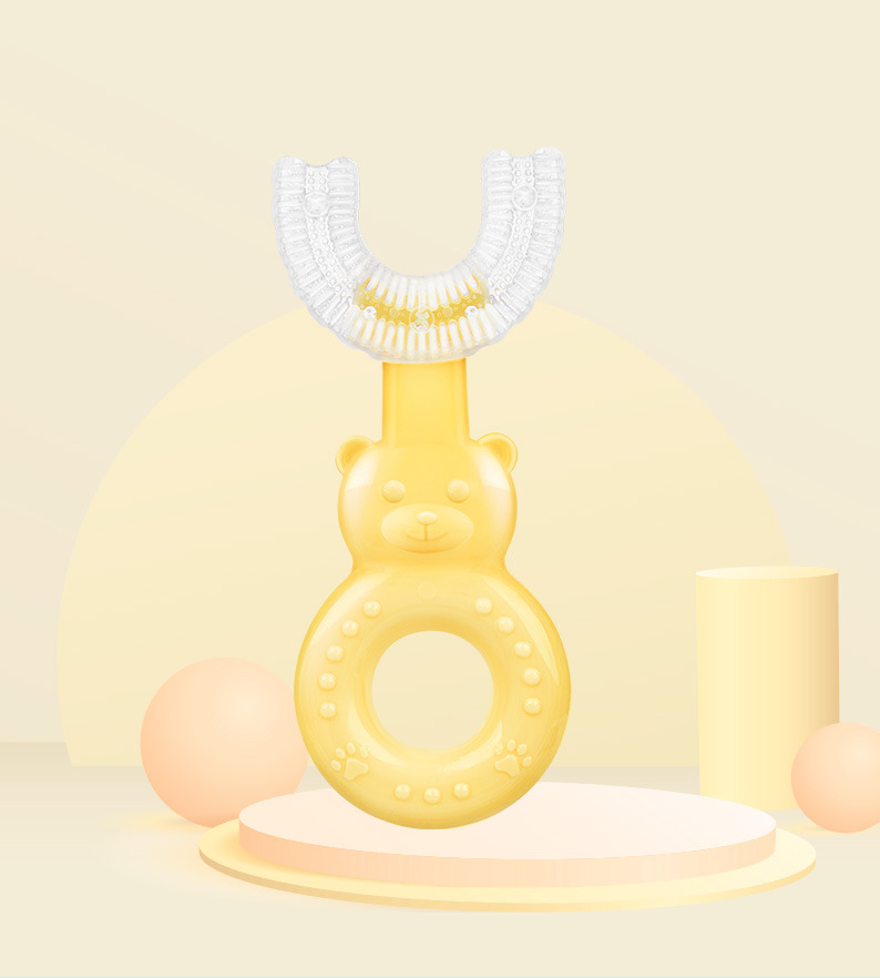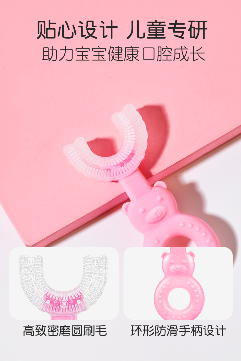 오지임 어린이용 U자형 귀여운 칫솔 2-6세용 1개입 실리콘 칫솔모 고온 소독 가능 제조업체 도매스토어 가기