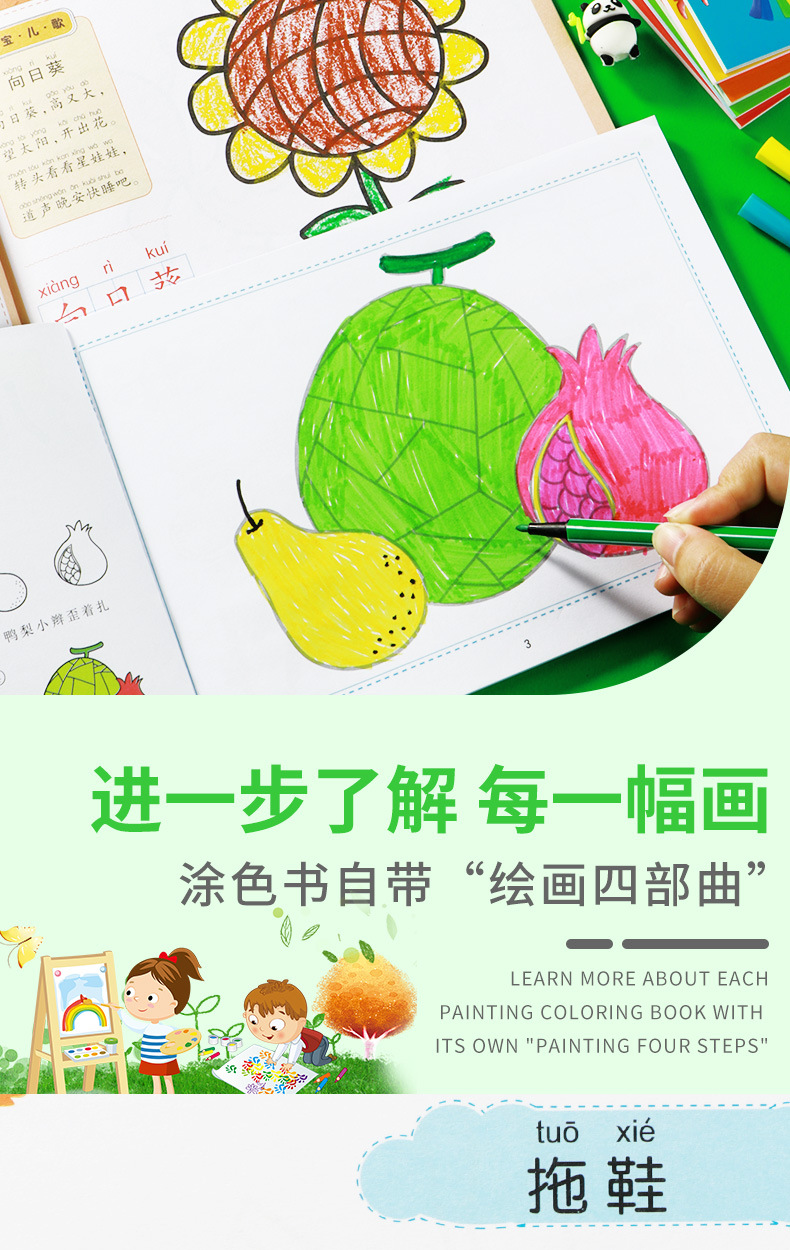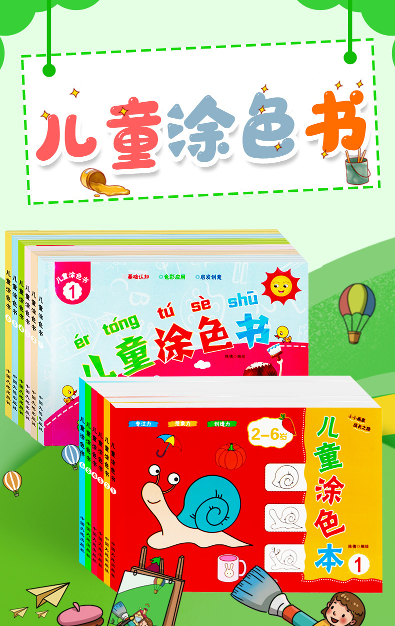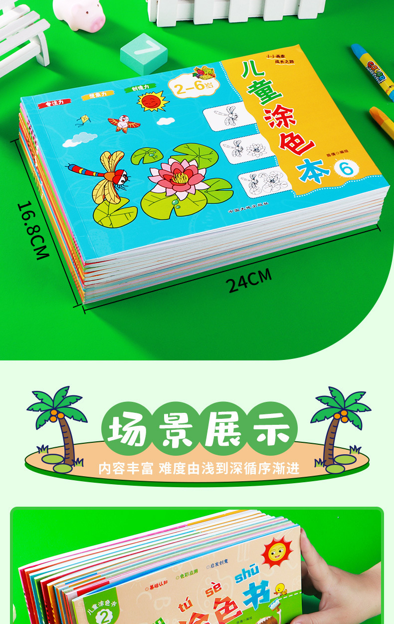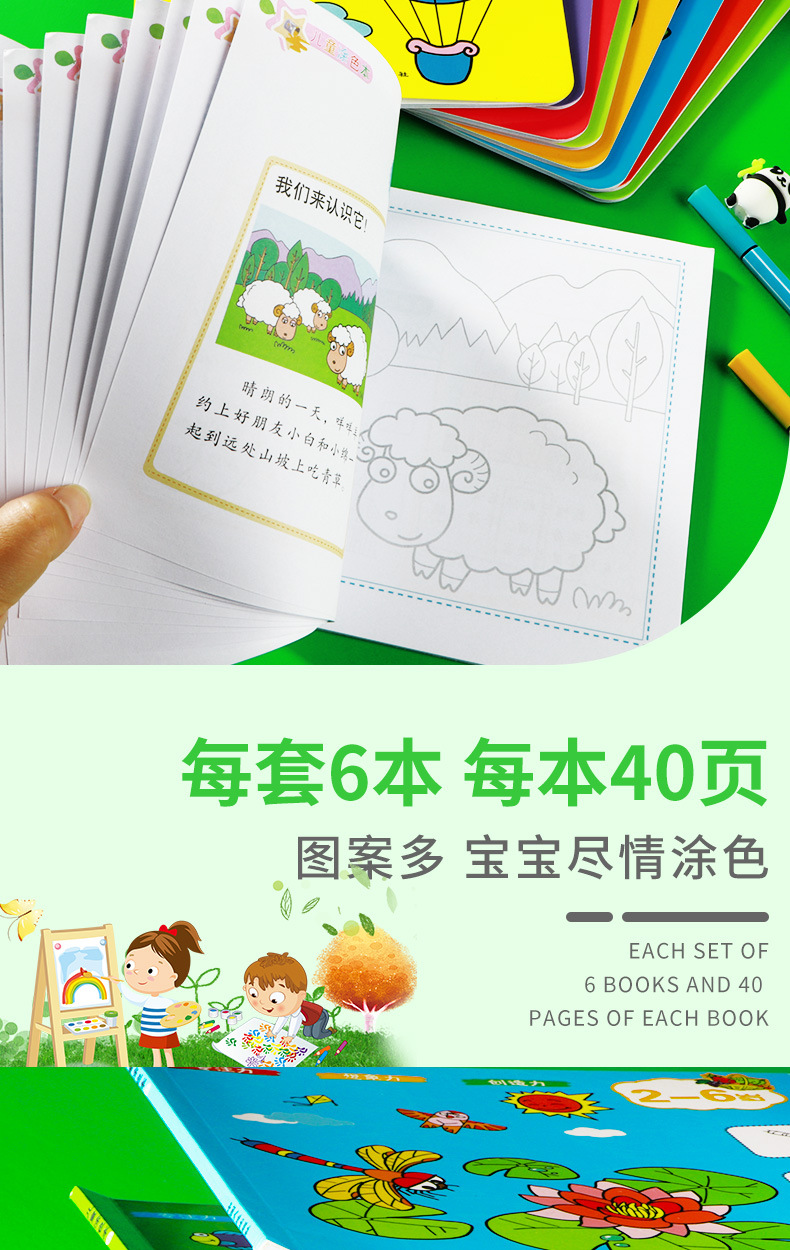 어린이 색칠하기 작은 손 그림 유치원 아기 학습 그림책 2-6 세 어린이 색칠하기 책 모두 6 권스토어 가기
