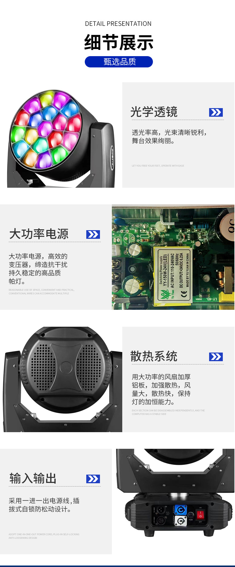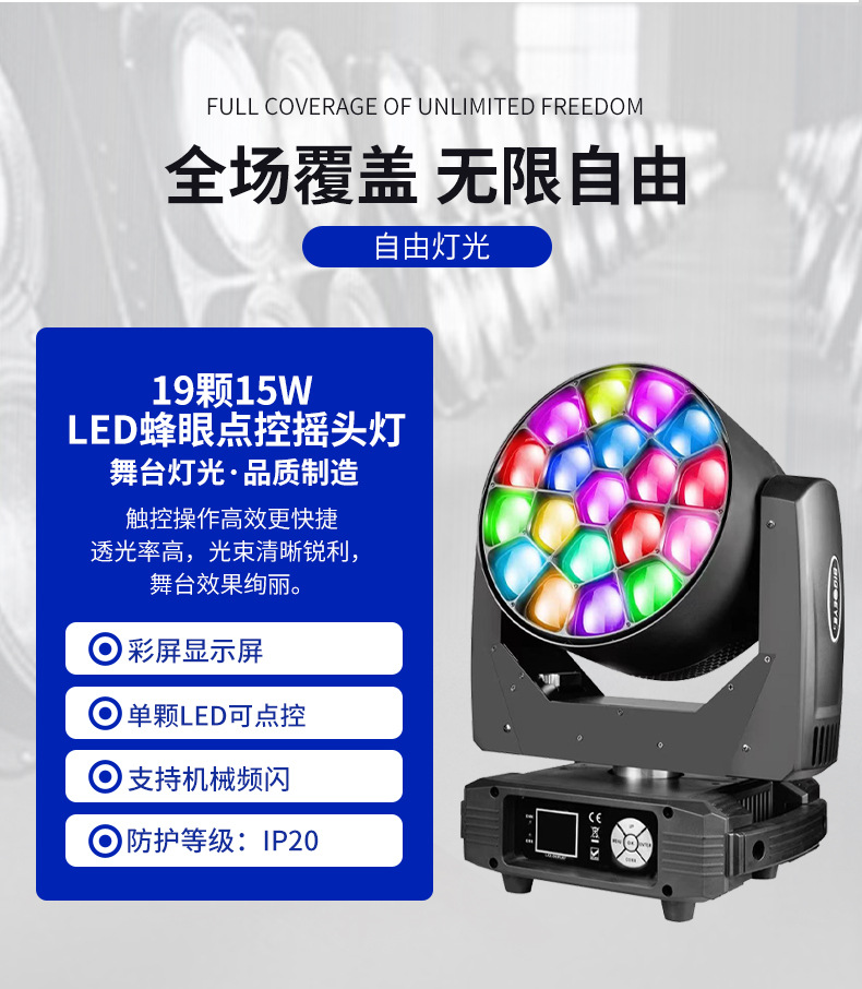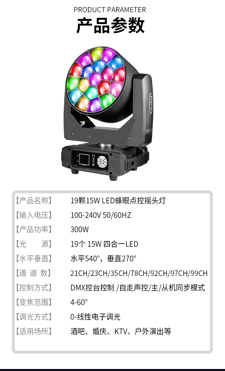 • 19pcs 15W LED Bee Eye Point 제어 이동 헤드 라이트