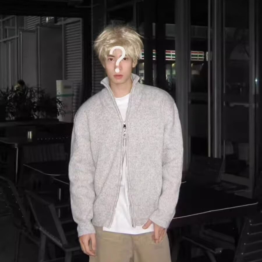 클린핏 스웨터 남성 봄 아메리칸 스타일 레트로 더블 지프 니트 카디건 패션 브랜드 레이드 백 스타일 칼라 재킷스토어 가기