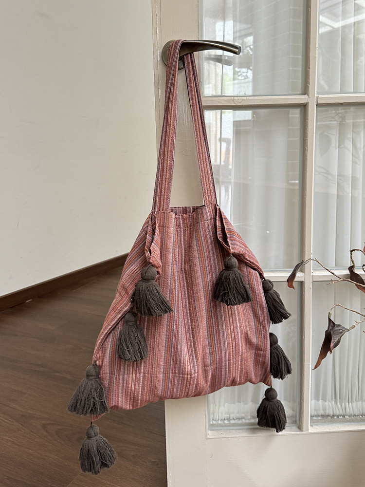 대용량 캔버스 토트 백 틈새 디자인 올 매치 캐주얼 가방 민족 스타일 올 매치 태슬 숄더 백