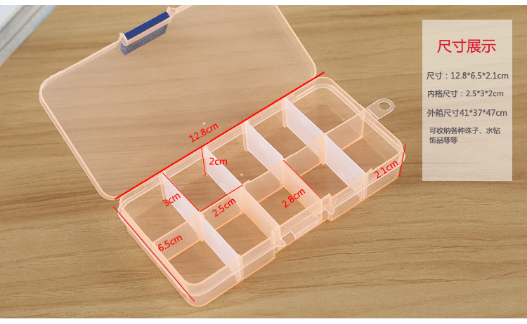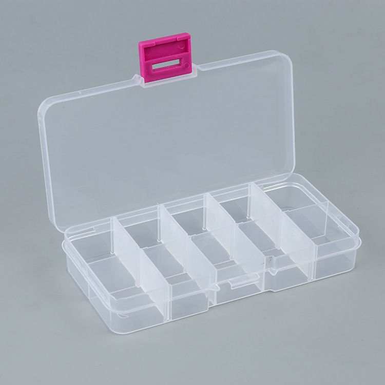 작은 10 구획 분리 가능한 투명 약 상자 낚시 기어 플라스틱 상자 PP 보석 다중 구획 포장 부품 상자 보석 저장 상자