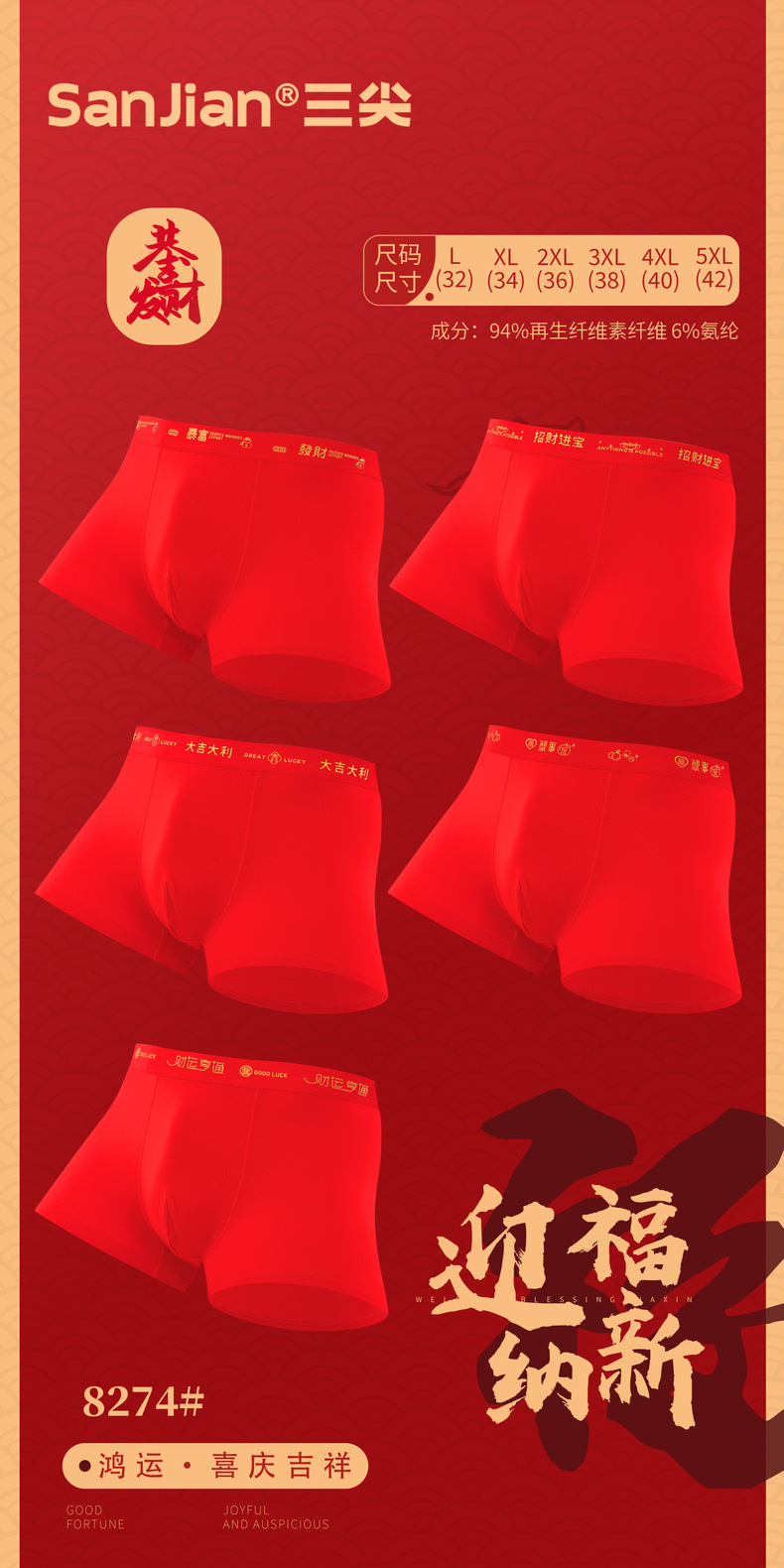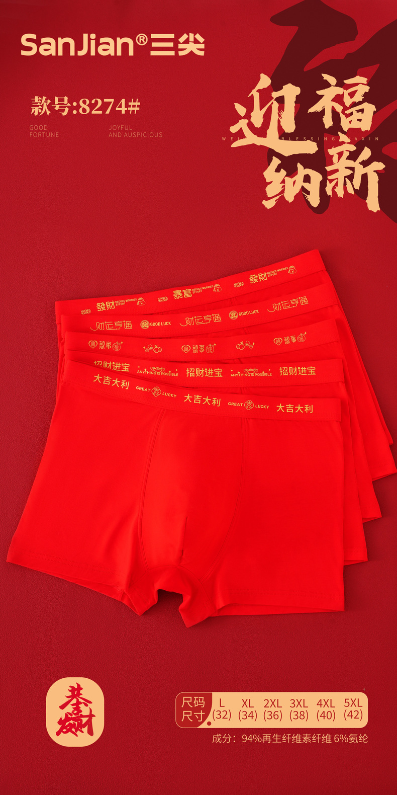 남성용 모달 레드 벤밍 니안 속옷 남성용 복서 통기성 편안한 복서 L-4XL 속옷스토어 가기