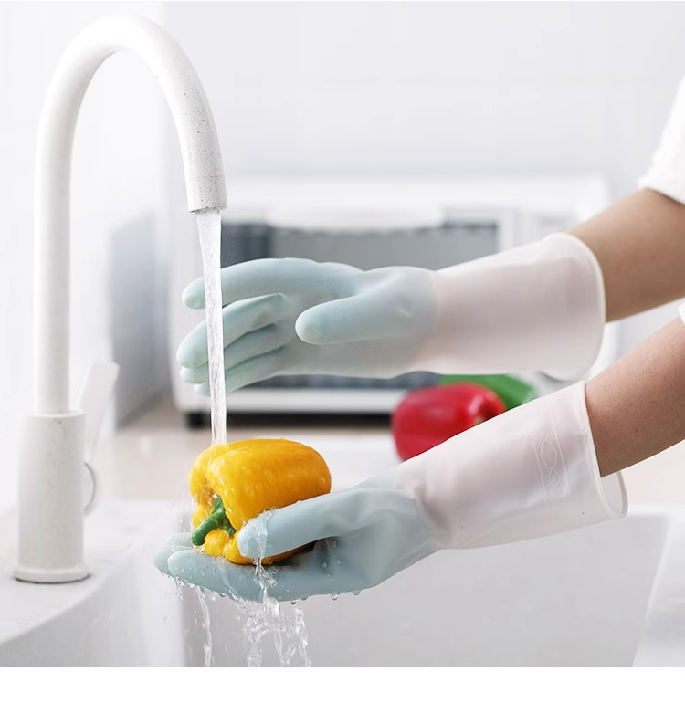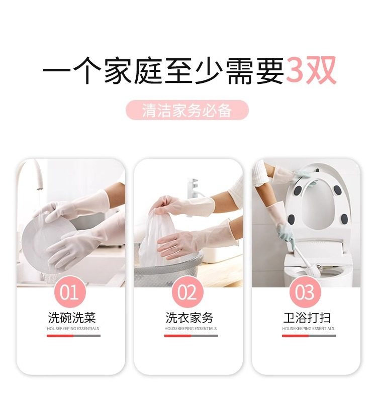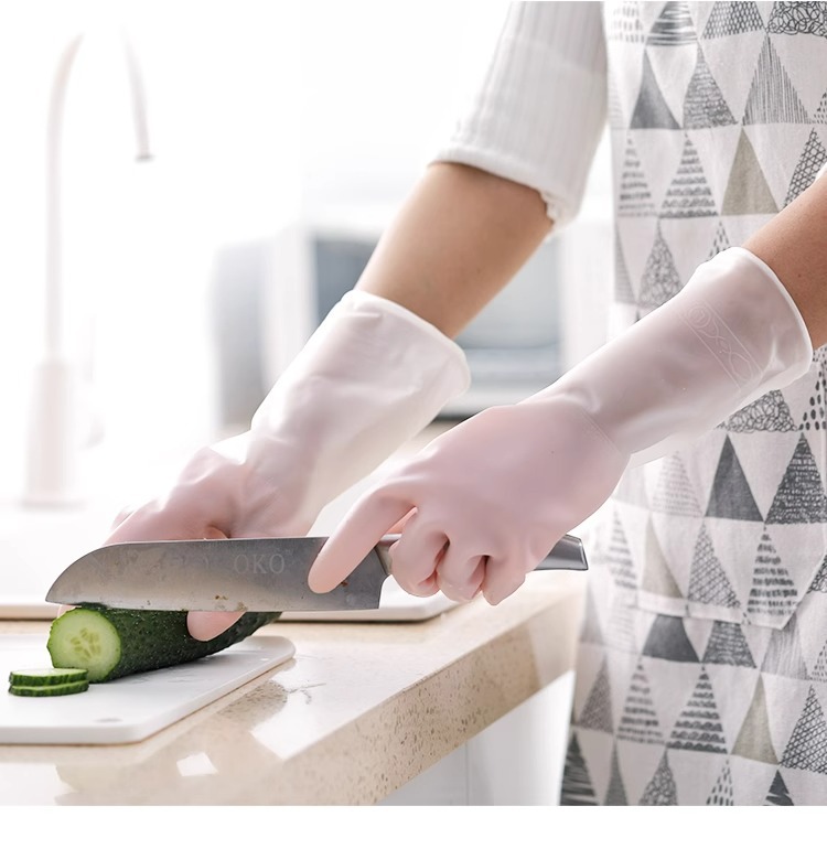 가정용 식기 세척 장갑 주방 내구성 손 스티커 방수 고무 장갑 가사 청소 및 세탁 용 여성용 그릇 세척