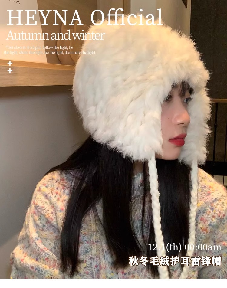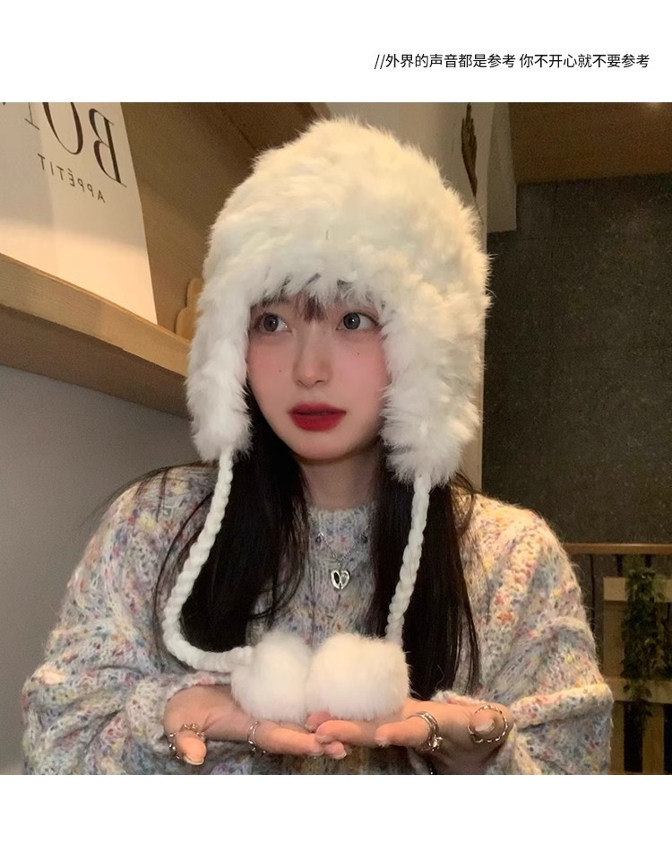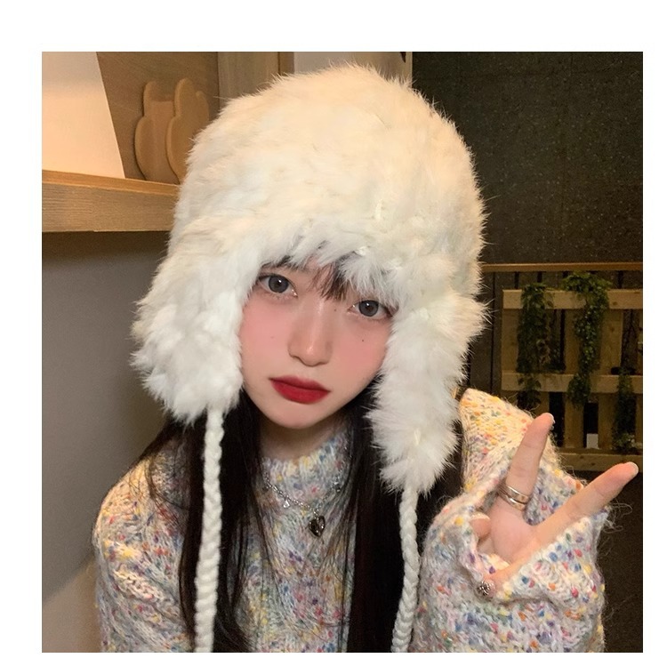 흰 토끼 모피 모자 여성의 가을과 겨울 한국 스타일 얼굴 작은 모든 경기 따뜻한 유지 푹신한 모자 사이클링 냉장 레이 펑 모자 트렌디