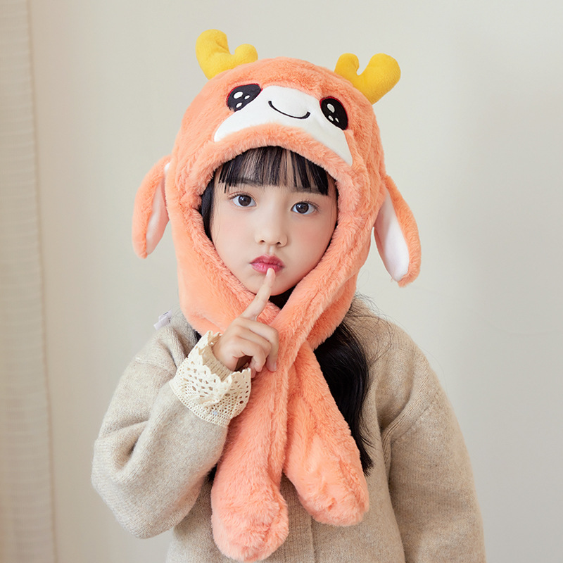 겨울 어린이 모자 스카프 올인원 모자 귀여운 만화 새끼 귀가 플러시 따뜻한 귀 보호 캡을 움직입니다.