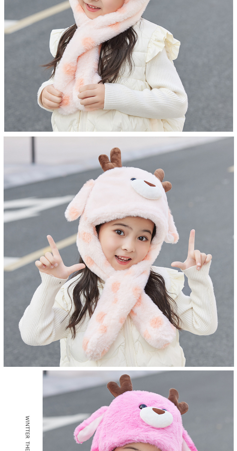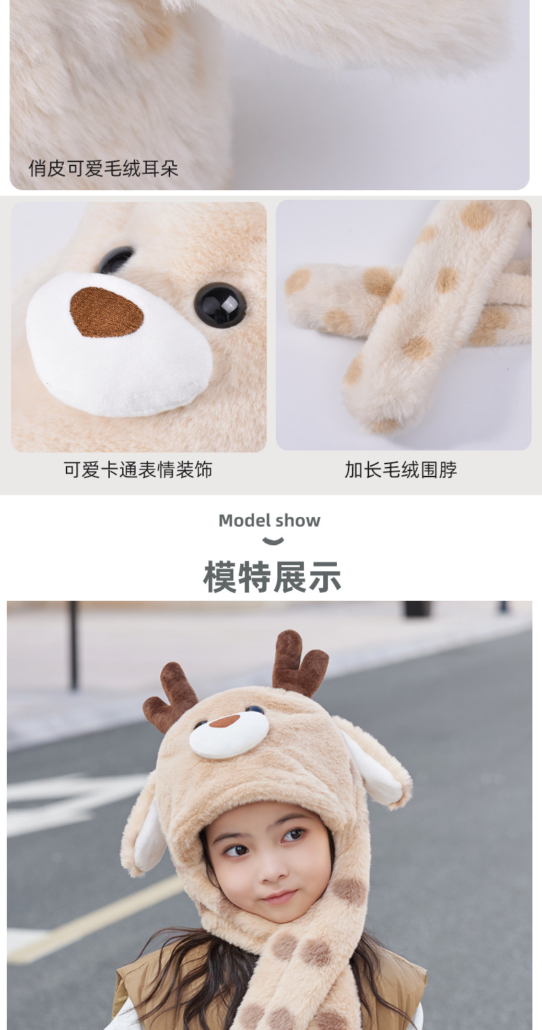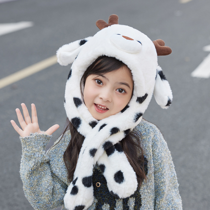 겨울 어린이 모자 스카프 올인원 모자 귀여운 만화 새끼 귀가 플러시 따뜻한 귀 보호 캡을 움직입니다.스토어 가기