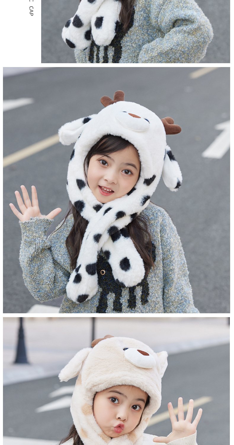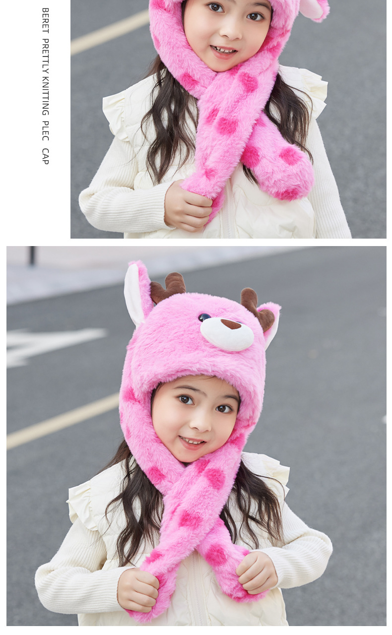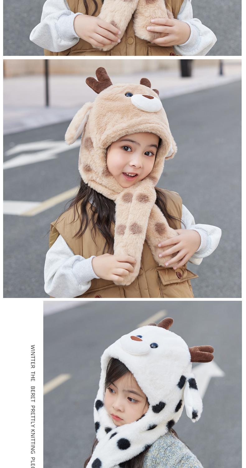 겨울 어린이 모자 스카프 올인원 모자 귀여운 만화 새끼 귀가 플러시 따뜻한 귀 보호 캡을 움직입니다.스토어 가기