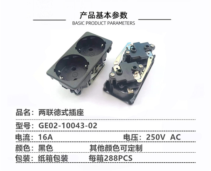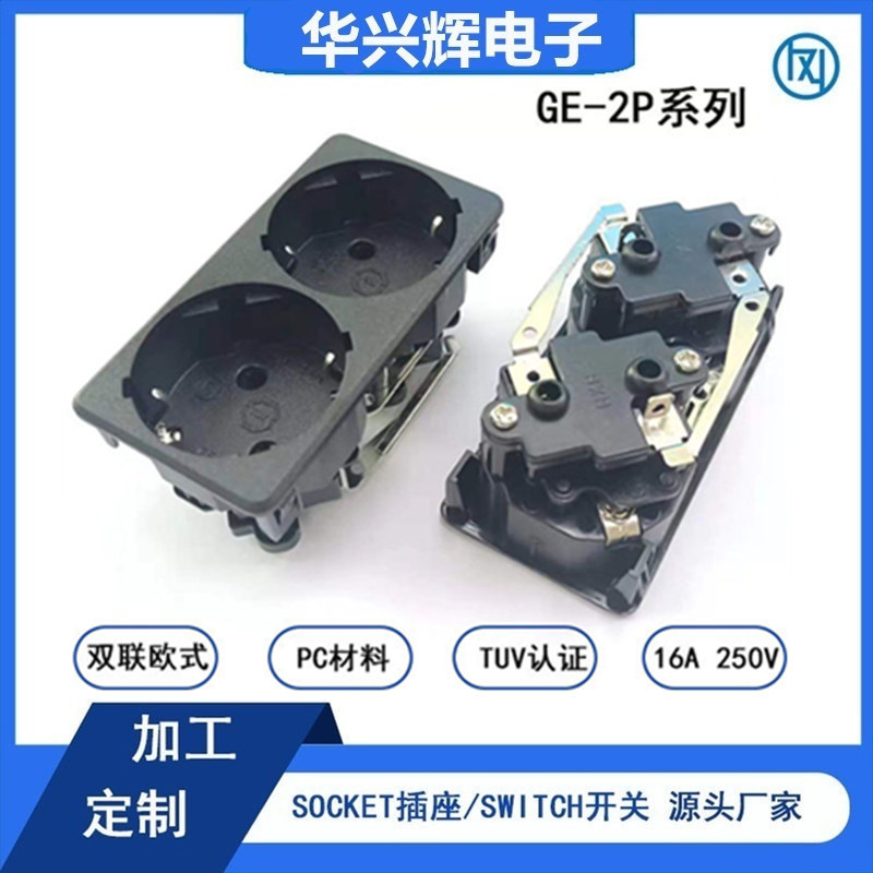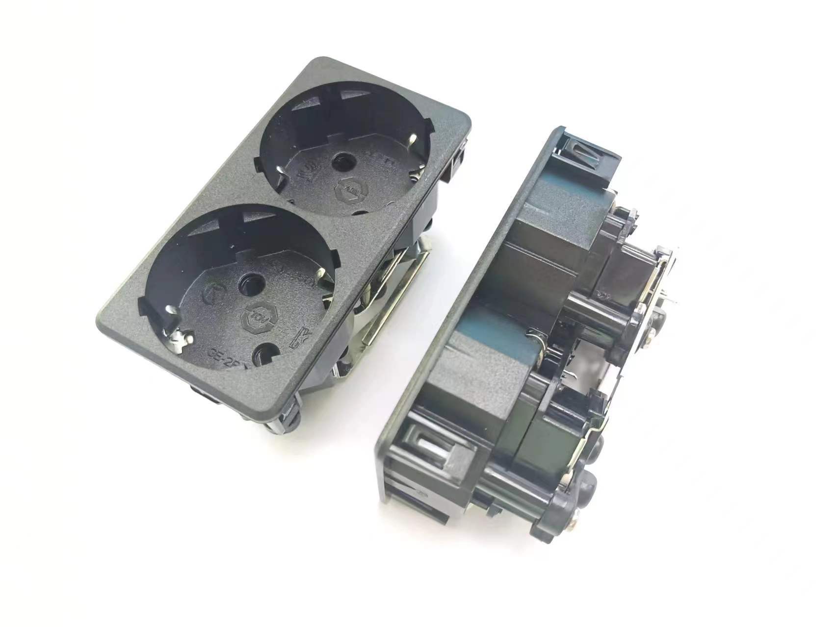 AC 전원 45도 독일식 2구 소켓 유럽 표준 TUV KC 인증 검정색 카드 삽입형 캐비닛 유럽 표준 소켓
