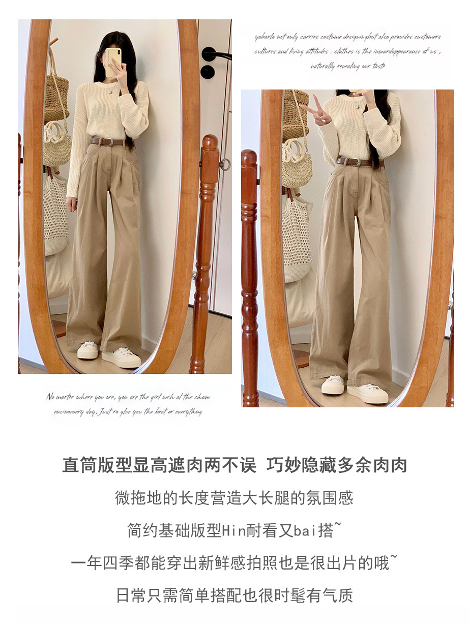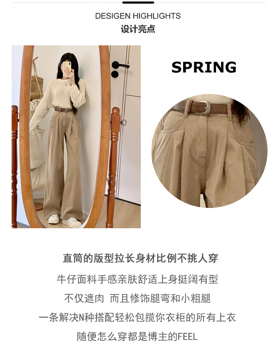 홍콩 스타일 빈티지 카키 넓은 다리 청바지 여성의 가을 다크 브라운 높은 허리 느슨한 슬리밍 스트레이트 다리 넓은 다리 긴 바지스토어 가기
