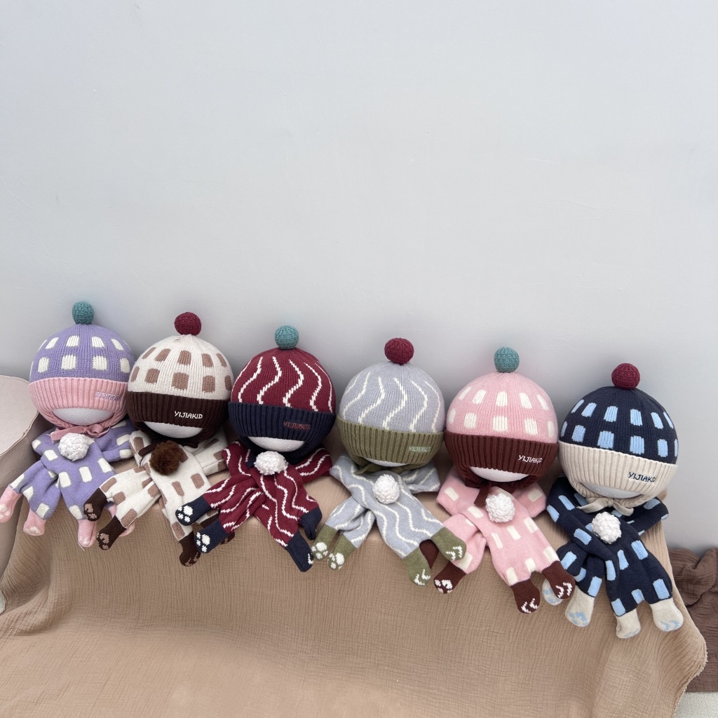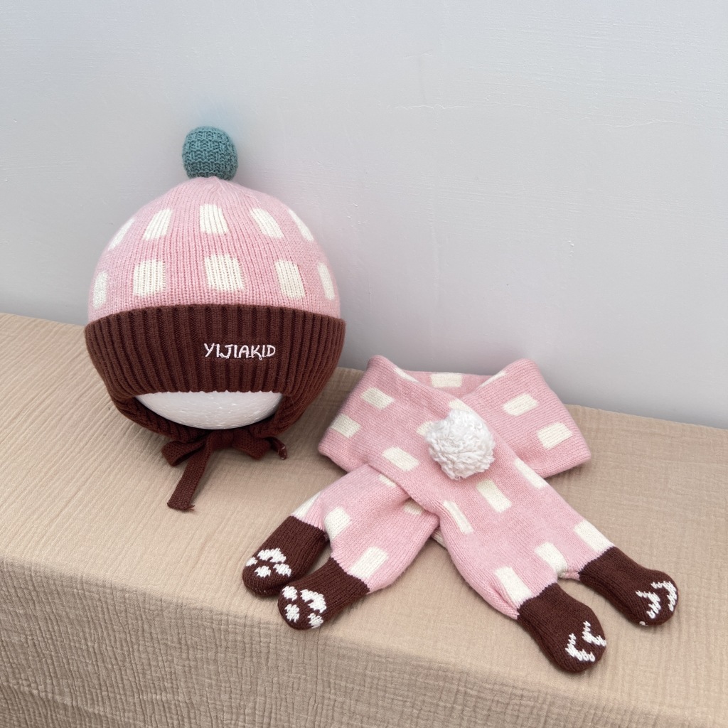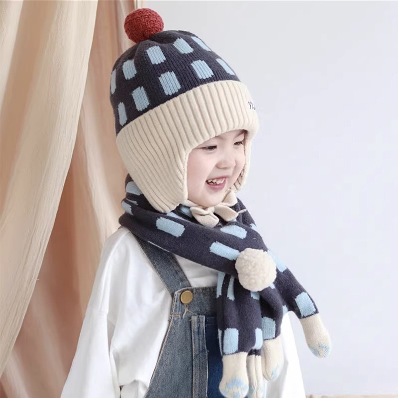 어린이 모자 스카프 두 조각 세트 가을과 겨울 두꺼운 니트 아기 따뜻한 양모 모자 귀 보호 모자 소년 소녀