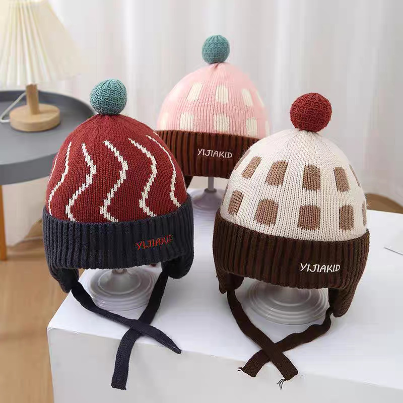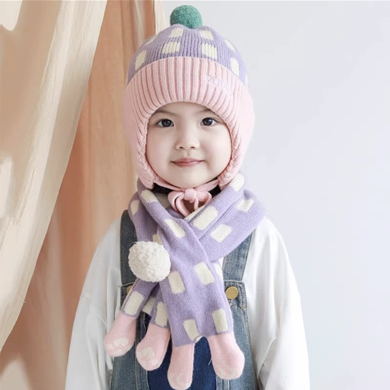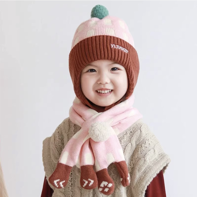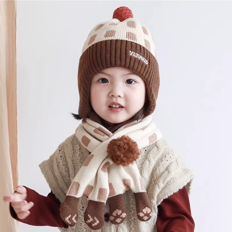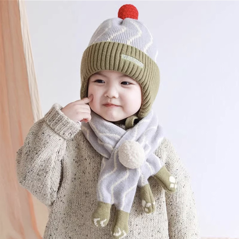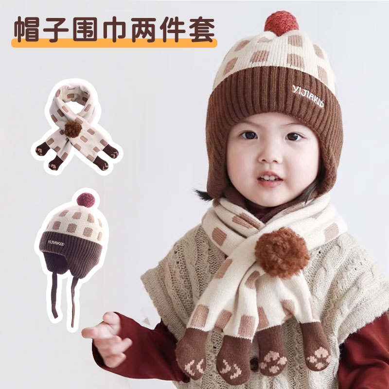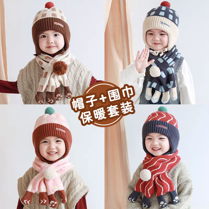 어린이 모자 스카프 두 조각 세트 가을과 겨울 두꺼운 니트 아기 따뜻한 양모 모자 귀 보호 모자 소년 소녀스토어 가기