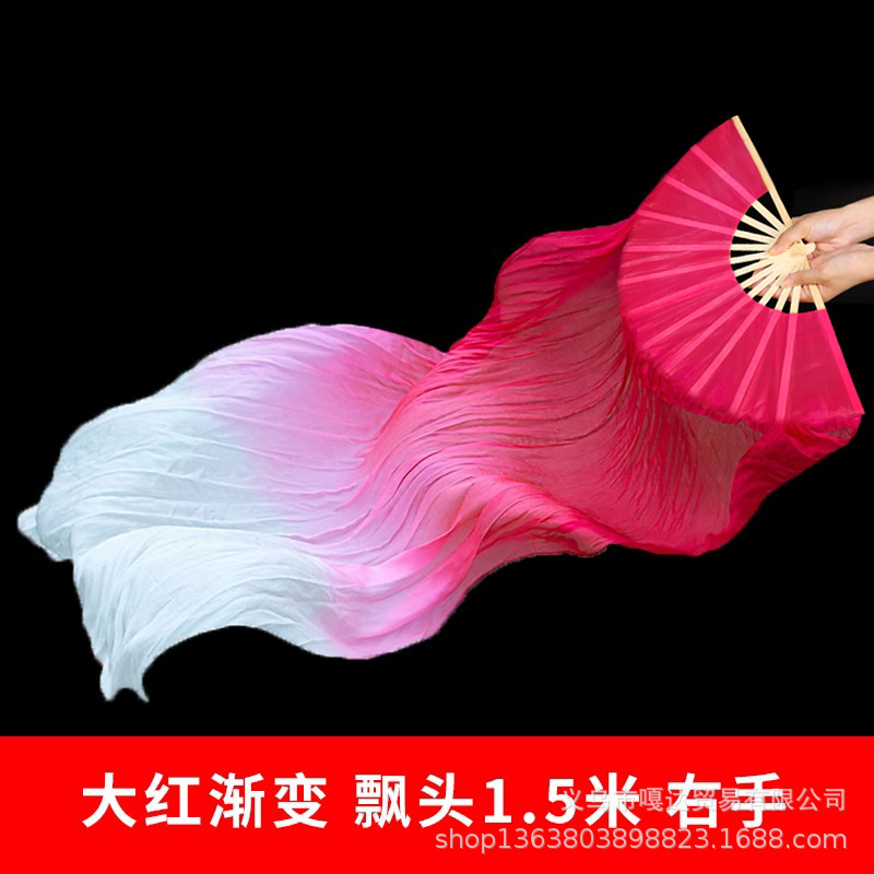 공장 도매 그라디언트 긴 실크 팬 긴 플로팅 헤드 더블 실크 성인 댄스 팬 스퀘어 댄스 성능 트위스트 양코 연장