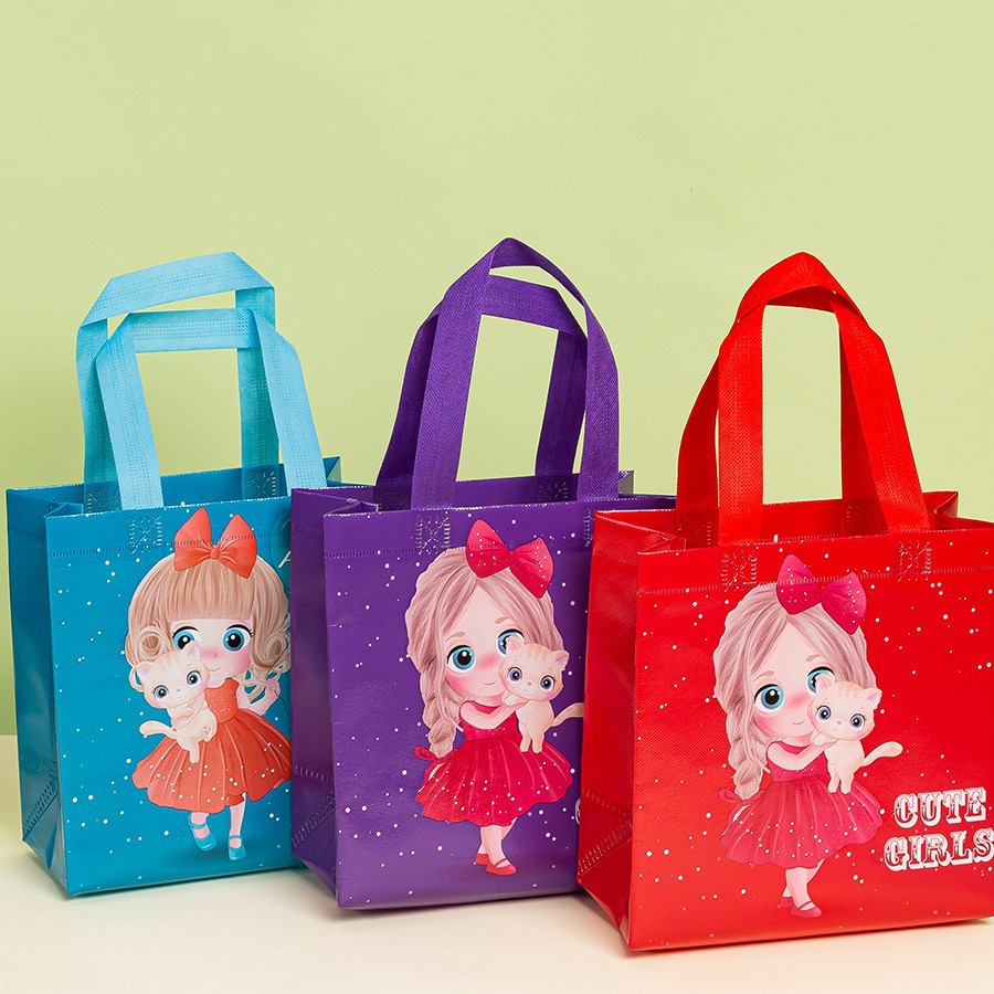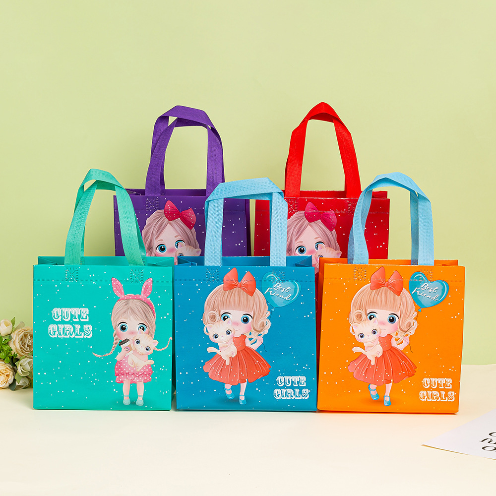 공장 도매 만화 컬러 인쇄 휴대용 쇼핑 가방 선물 가방 테이크 아웃 포장 필름 방수 3 차원 부직포 가방