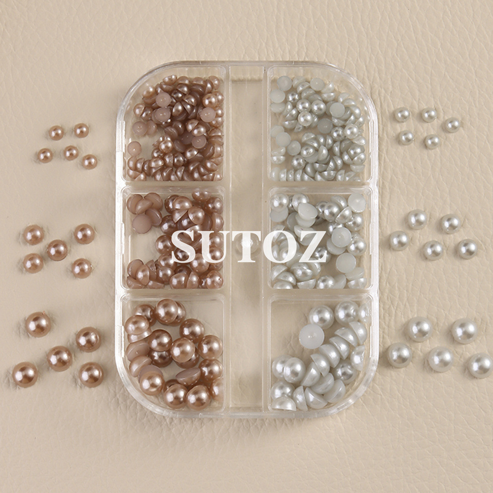 국경 새 네일 쥬얼리 가을과 겨울 3 차원 반원 평면 바닥 진주 네일 DIY 장식 액세서리 네일