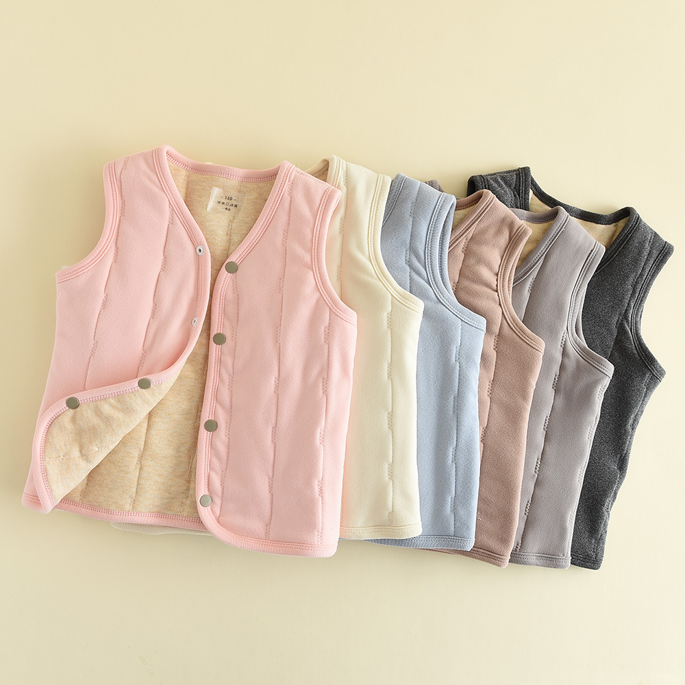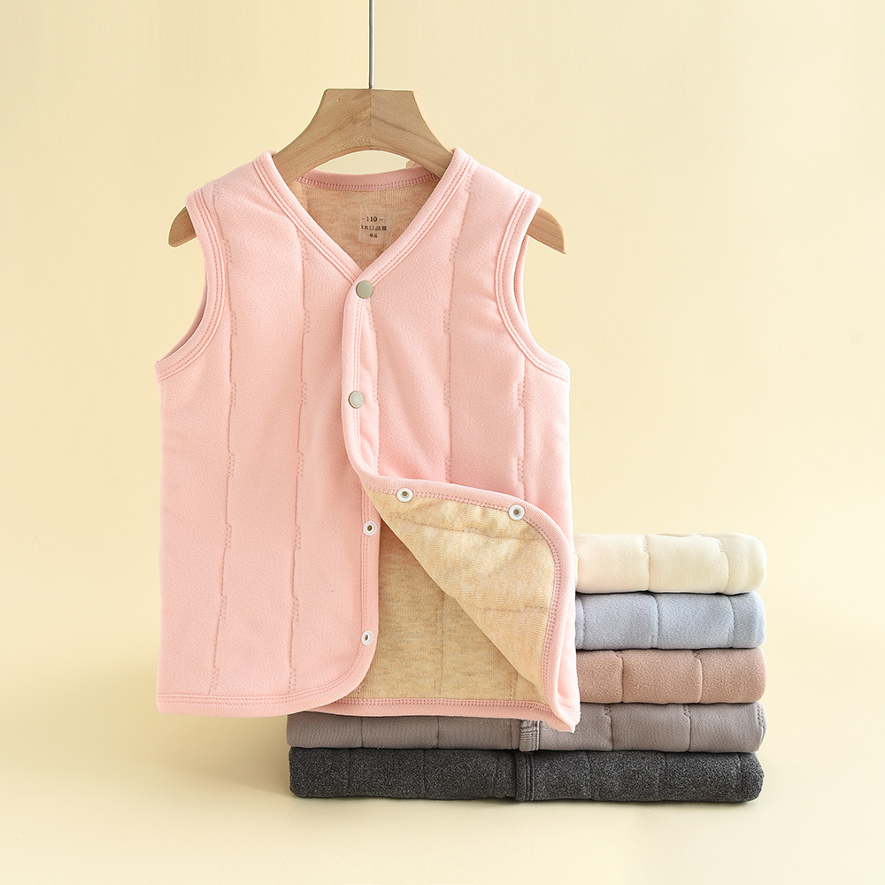 어린이 따뜻한 조끼 겨울 실크 울 슈퍼 소프트 따뜻한 오픈 버클 조끼 소년 소녀를위한 배꼽 보호자