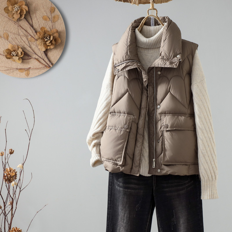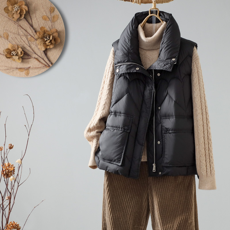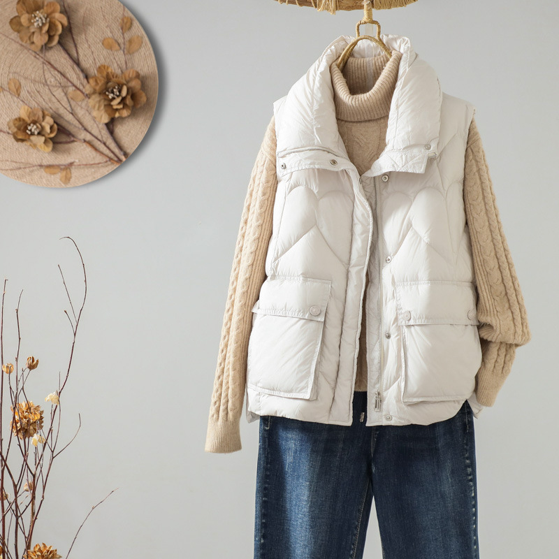 90 화이트 덕 다운 조끼 여성 쇼트 2024 가을 및 겨울 새로운 경량 다운 재킷 칼라 패션 조끼 재킷스토어 가기