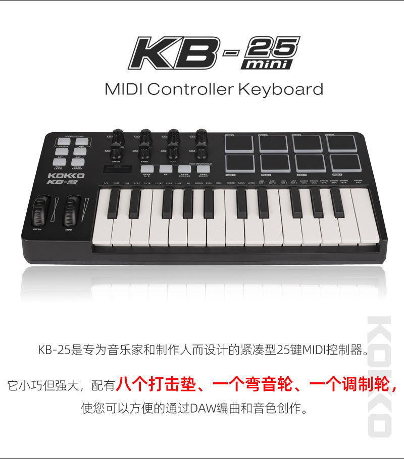 KOKKO KB-25 전문 미디 키보드 미디 컨트롤러 음악 키보드 전자 키보드