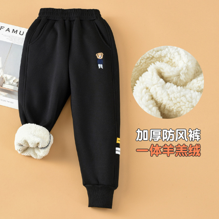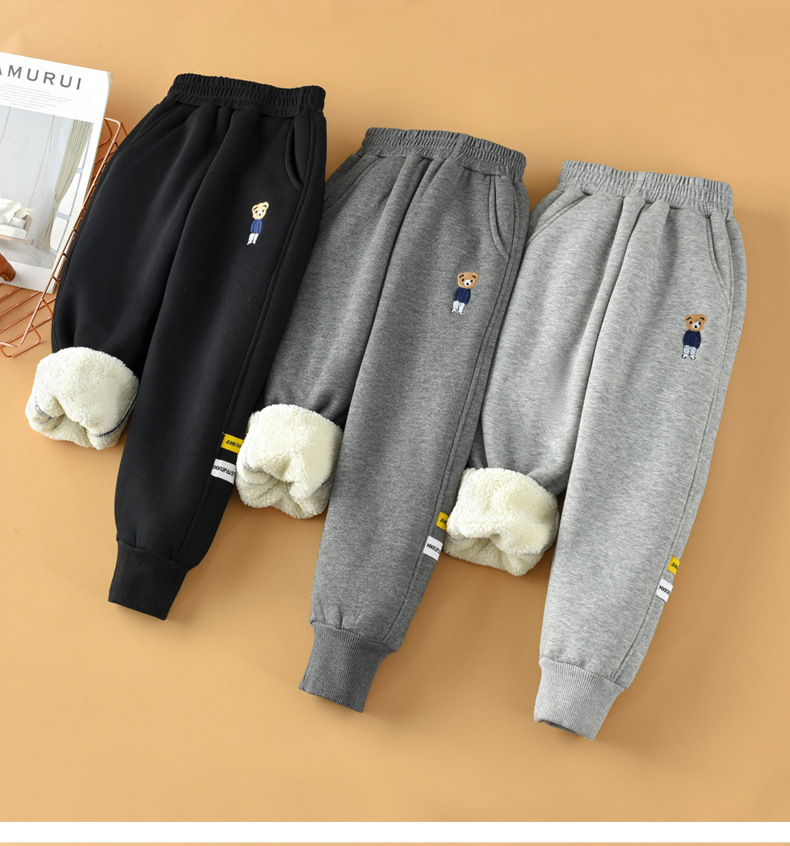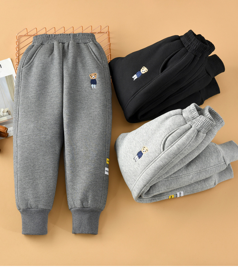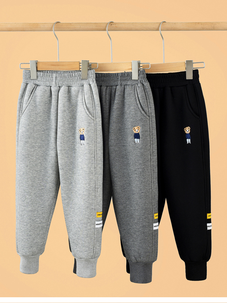 아동복 소년 가을과 겨울 아이 벨벳 2024 새로운 스타일 중대형 어린이 솔리드 컬러 스포츠 바지 한국 스타일 트렌디 트렌디 한 팬츠스토어 가기