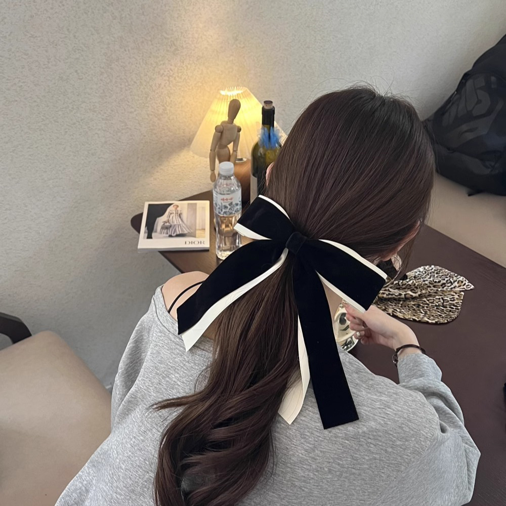 • 퓨어 블랙 발레 스타일 벨벳 머리핀