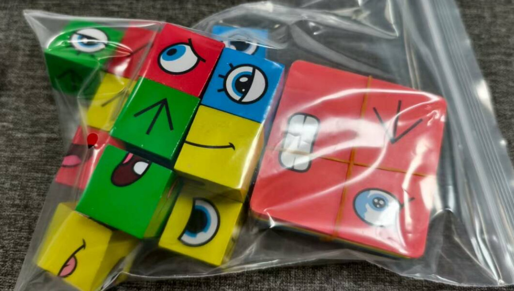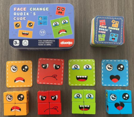 • 플라스틱 상자에 담긴 얼굴이 바뀌는 루빅스 큐브(빌딩 블록 16개 + 카드 64개)