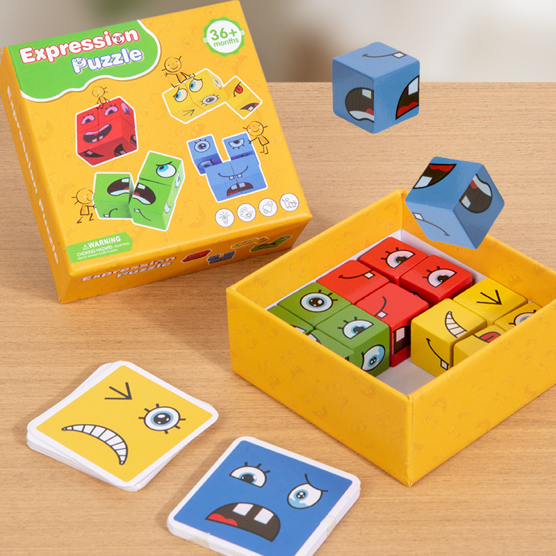 얼굴을 바꾸는 루빅스 큐브 스마일리 재미 표현 빌딩 블록 퍼즐 어린이 장난감 논리 사고 퍼즐과 같은 색조스토어 가기