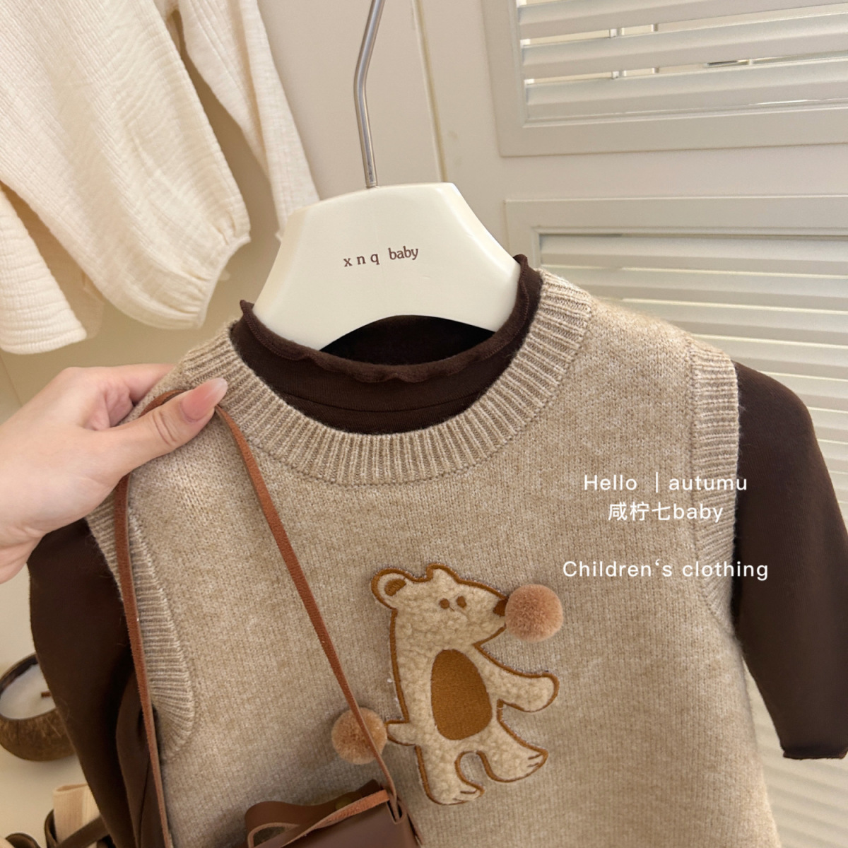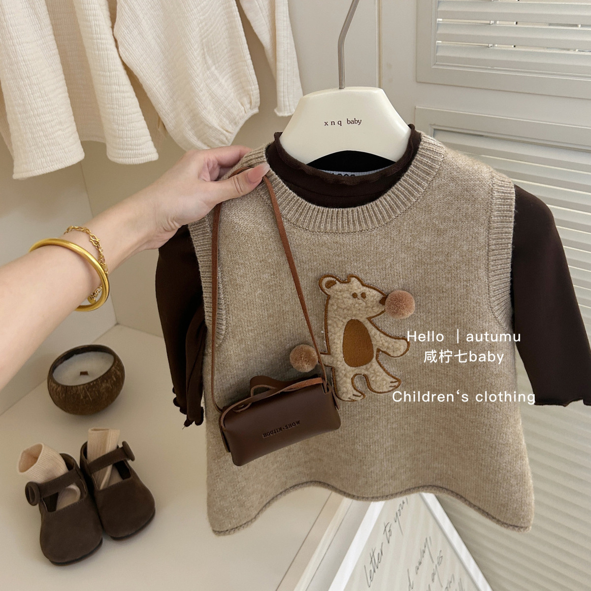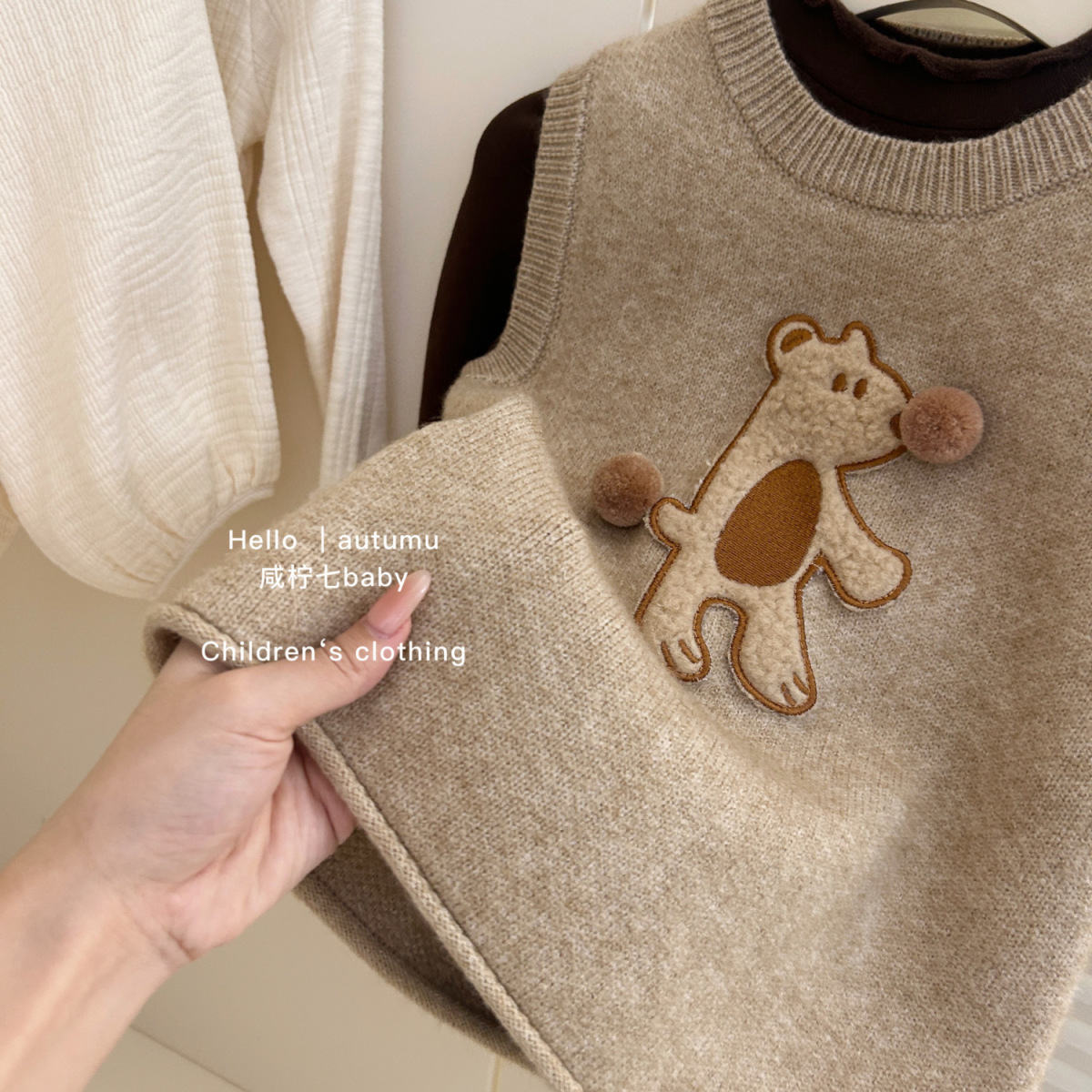 여자 가을 만화 스웨터 민소매 조끼 2024 새로운 스타일 여성의 보물 3 차원 공 니트 조끼 치마스토어 가기
