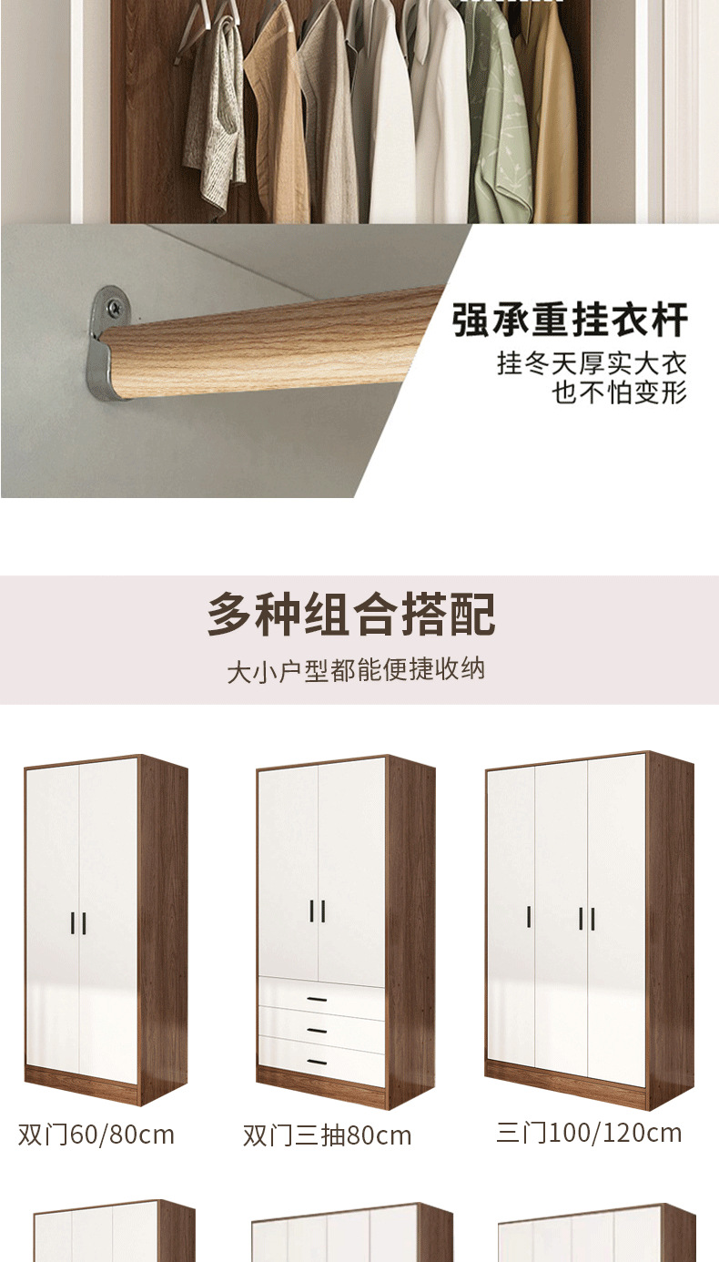 옷장 가구 침실 경제적 인 임대 방 작은 아파트 간단한 조립 어린이 나무 보관 캐비닛 교수형 옷장