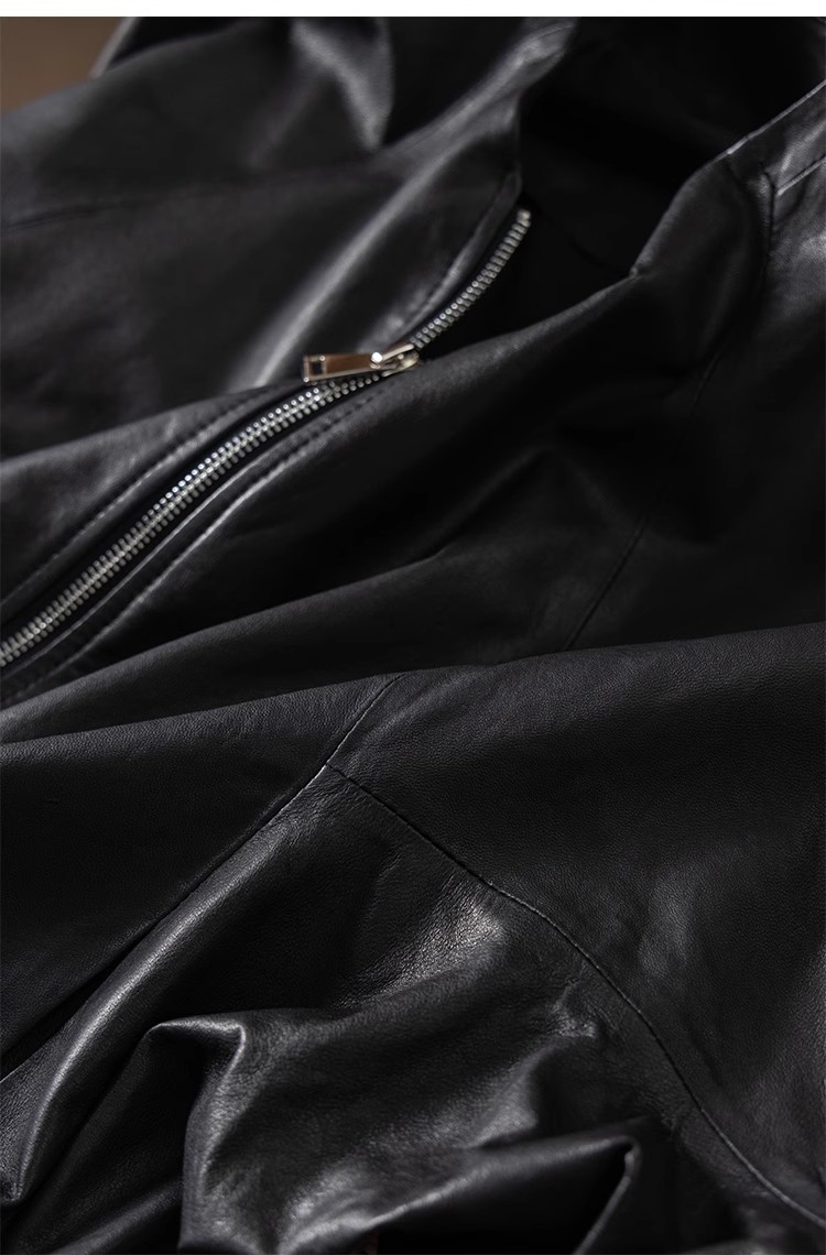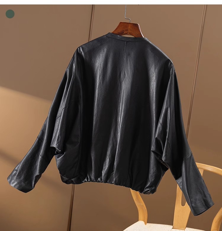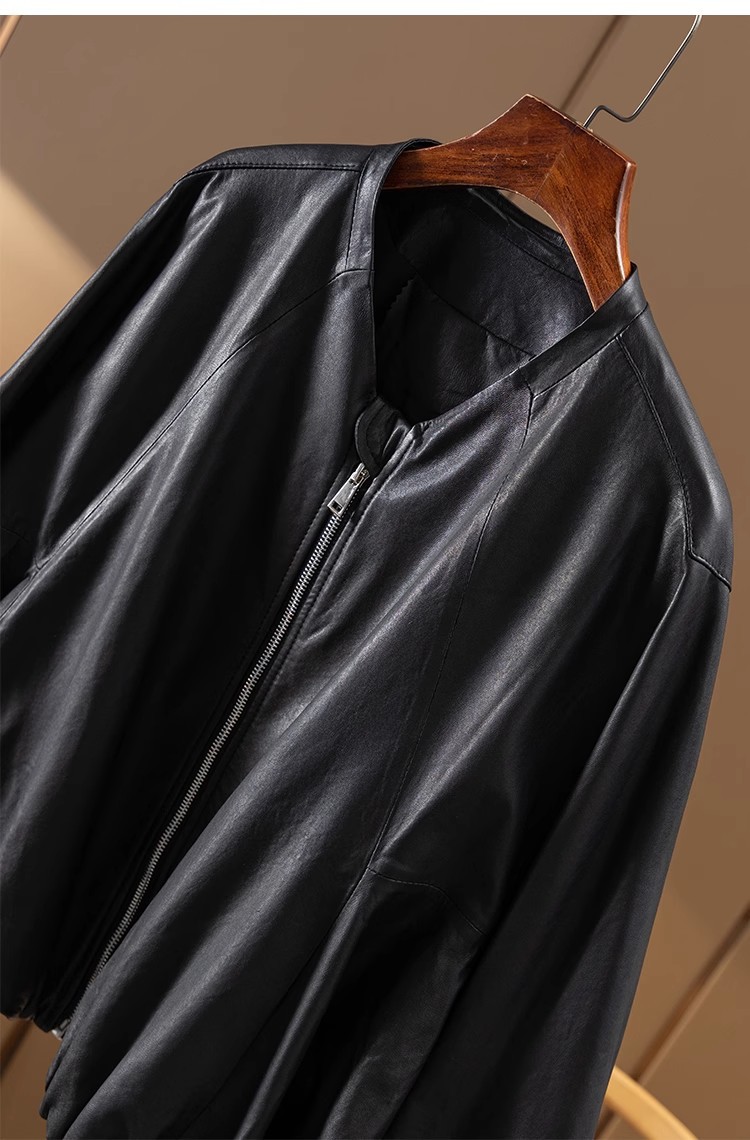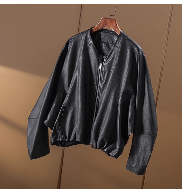 가을 새로운 올 매치 재킷 우아한 캐주얼 지퍼 라운드 넥 양가죽 정품 가죽 자켓 여성용 가죽 자켓스토어 가기