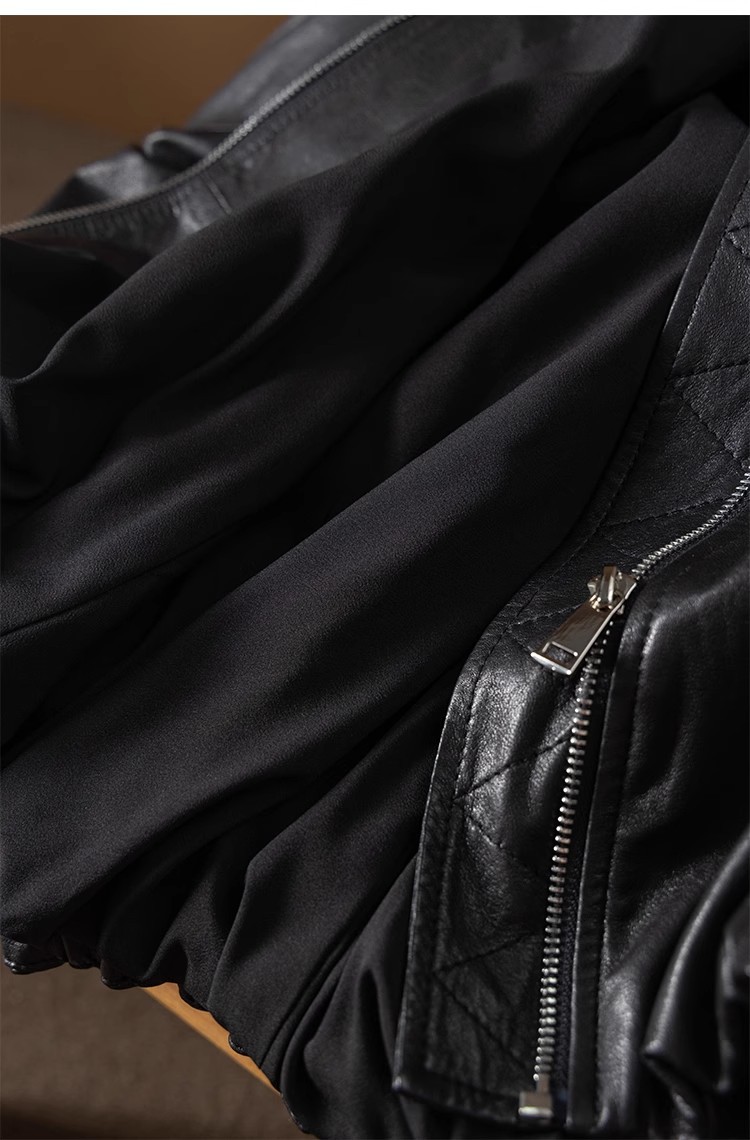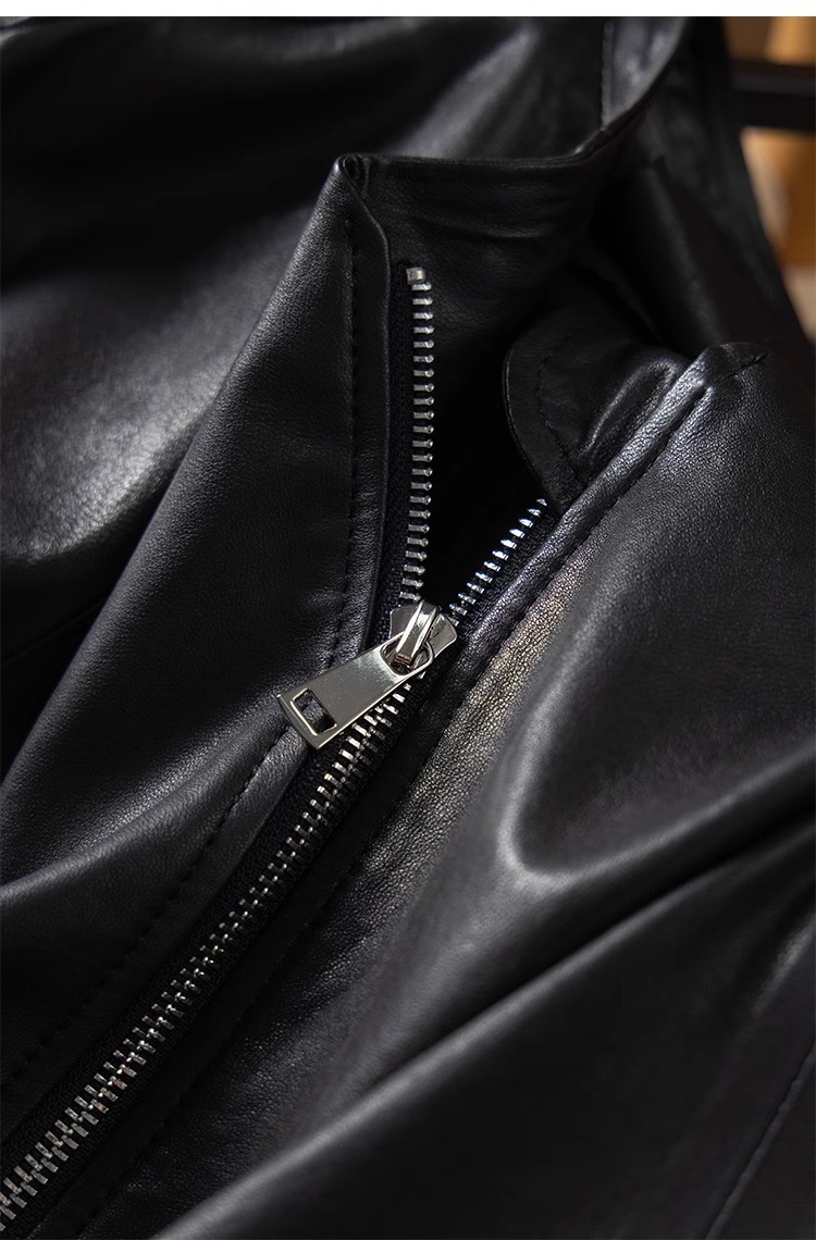 가을 새로운 올 매치 재킷 우아한 캐주얼 지퍼 라운드 넥 양가죽 정품 가죽 자켓 여성용 가죽 자켓