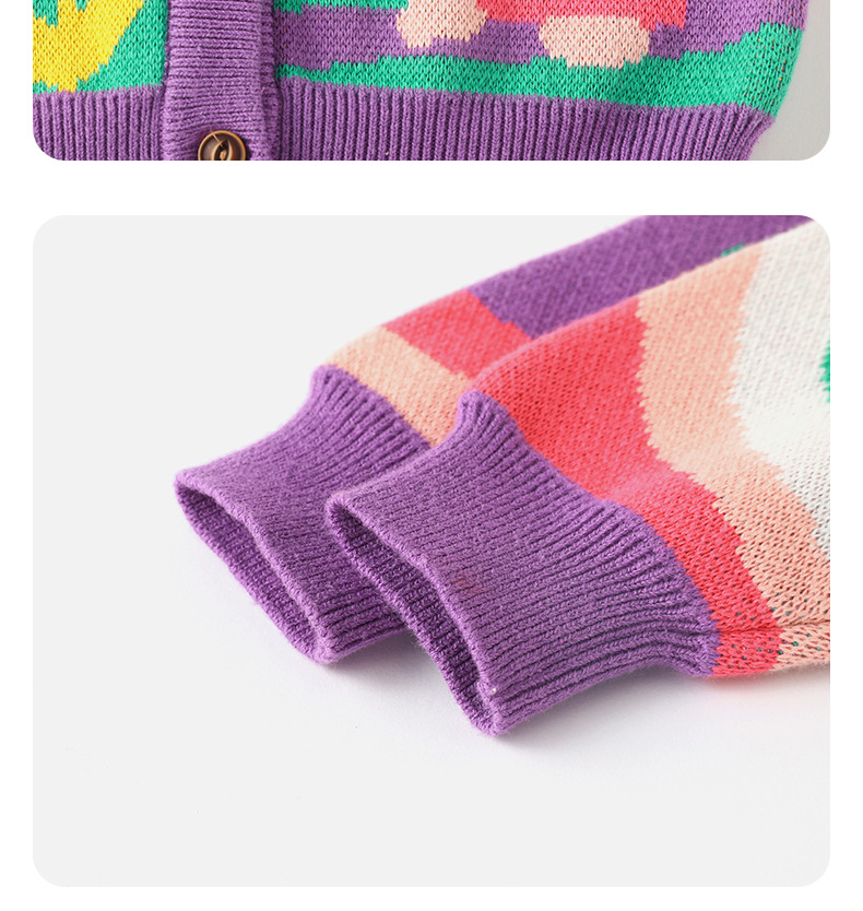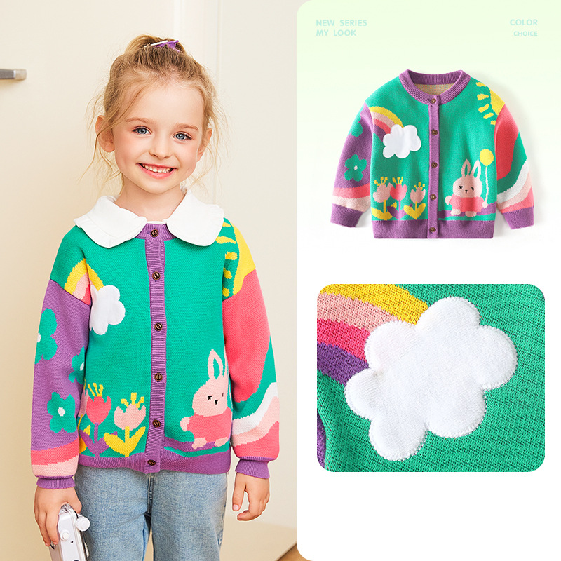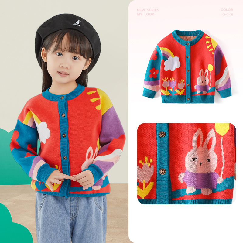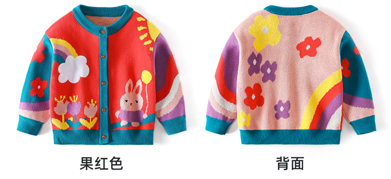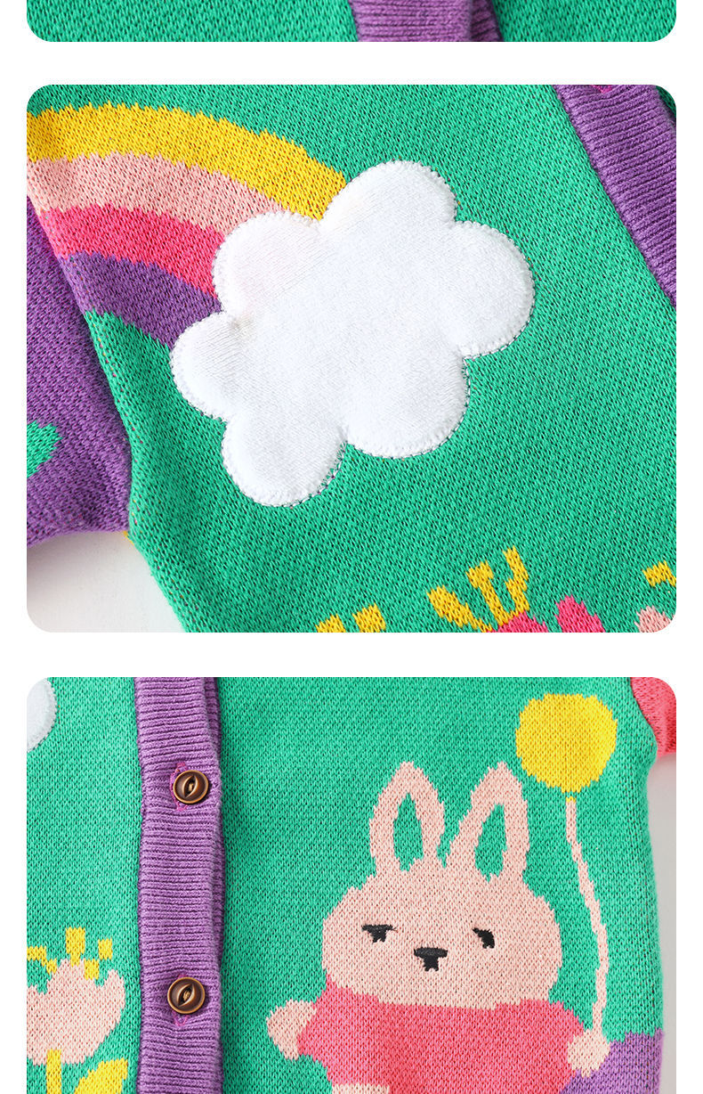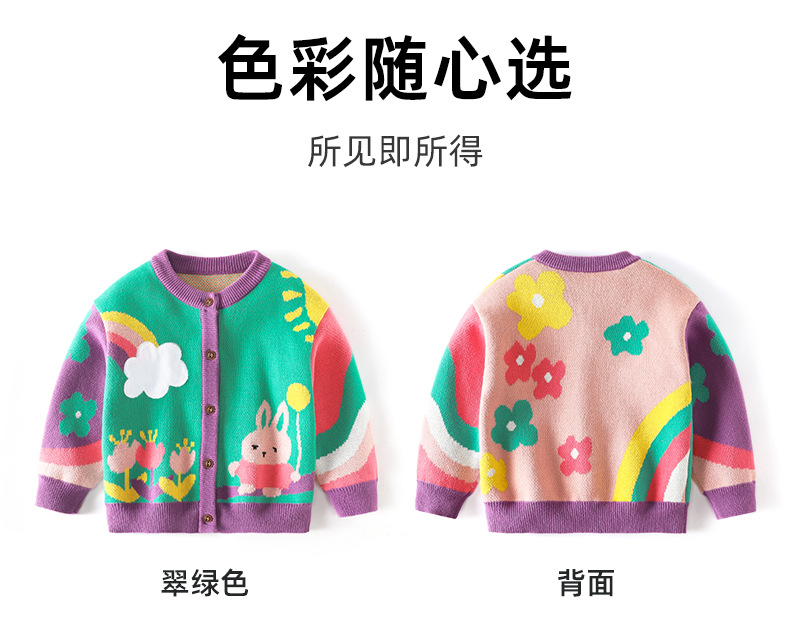 Coolwa Mi 가을, 겨울 새 여자 한국어 버전 대비 색상 만화 꽃 무지개 토끼 달콤한 아기 소녀 니트 스웨터 카디건