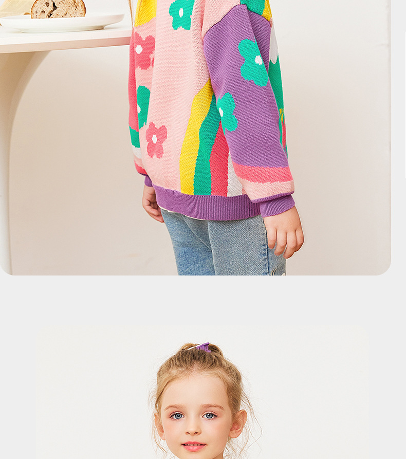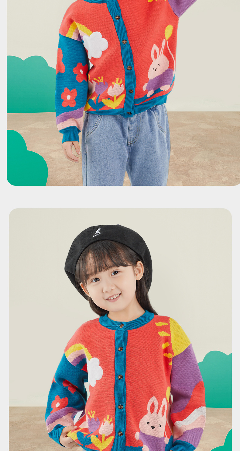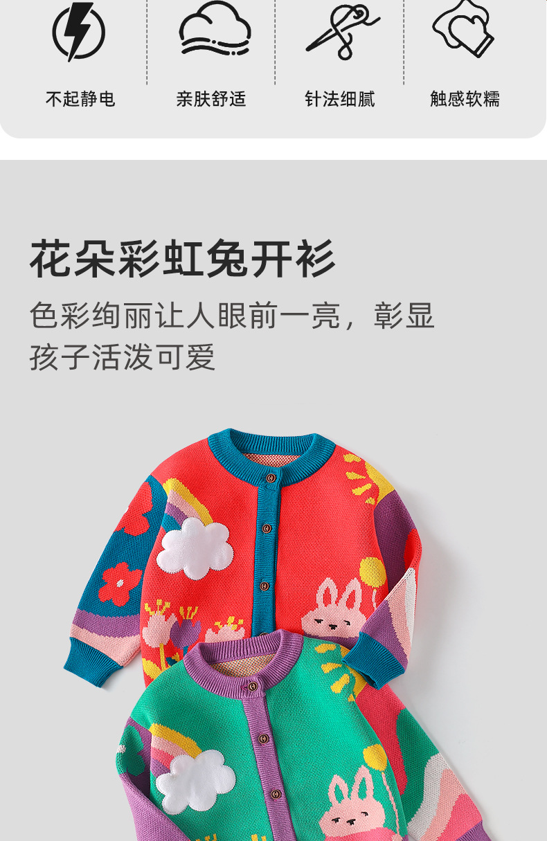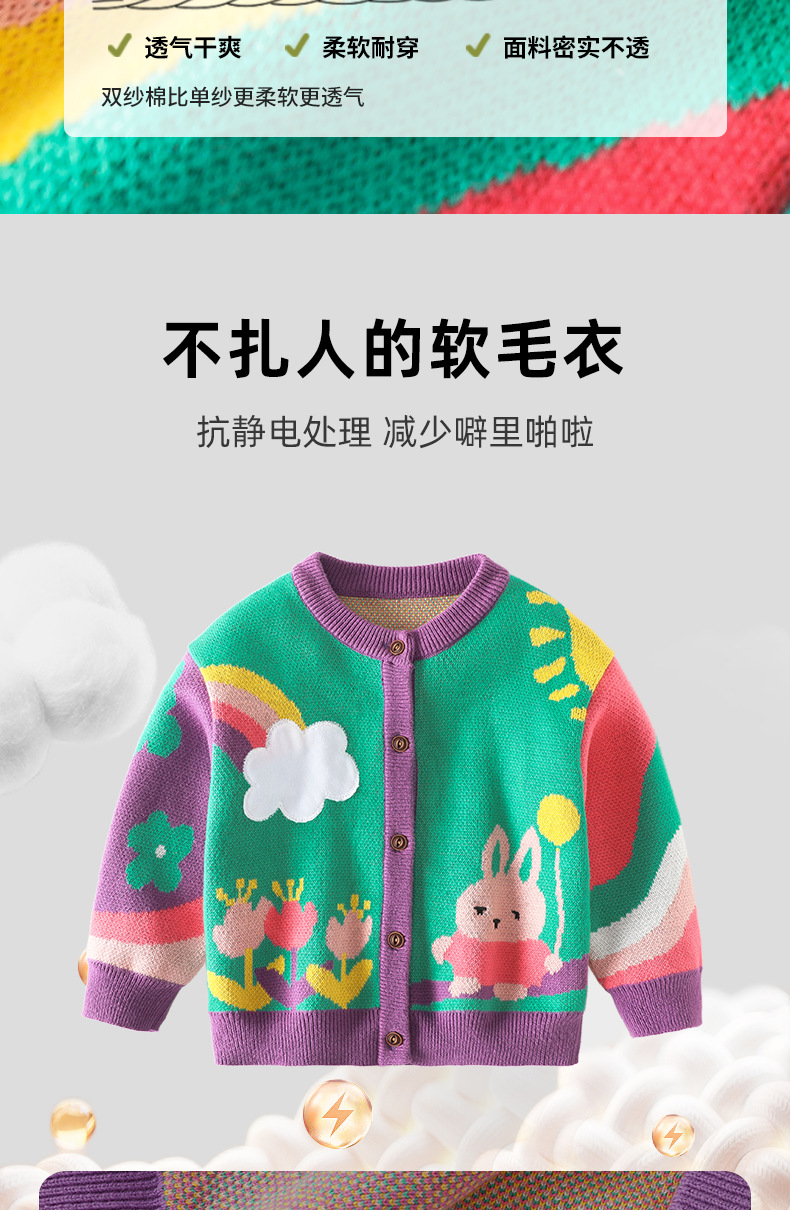 Coolwa Mi 가을, 겨울 새 여자 한국어 버전 대비 색상 만화 꽃 무지개 토끼 달콤한 아기 소녀 니트 스웨터 카디건