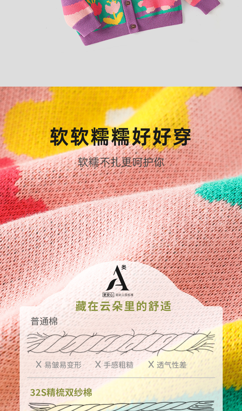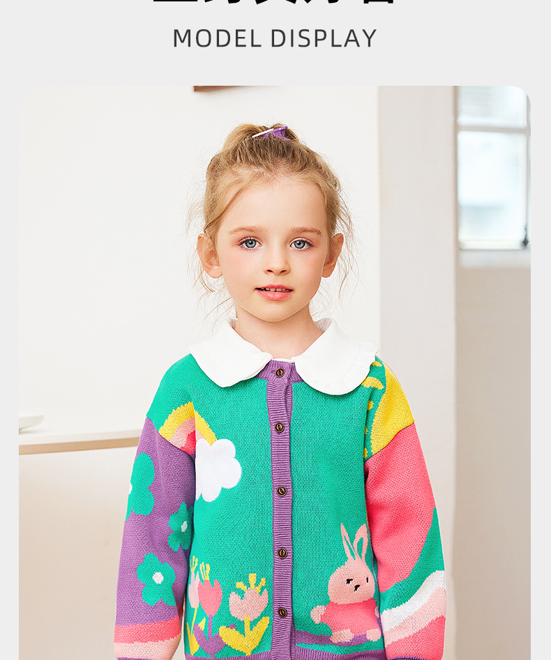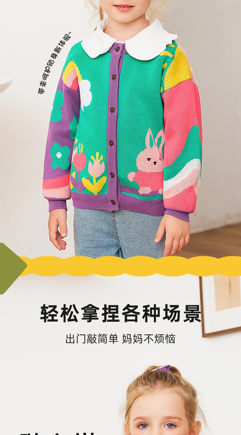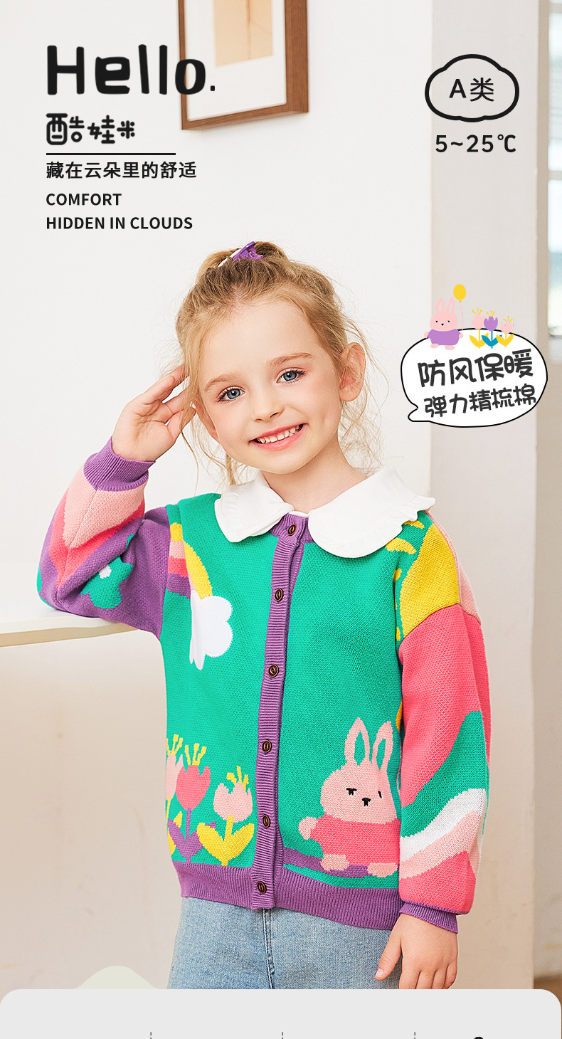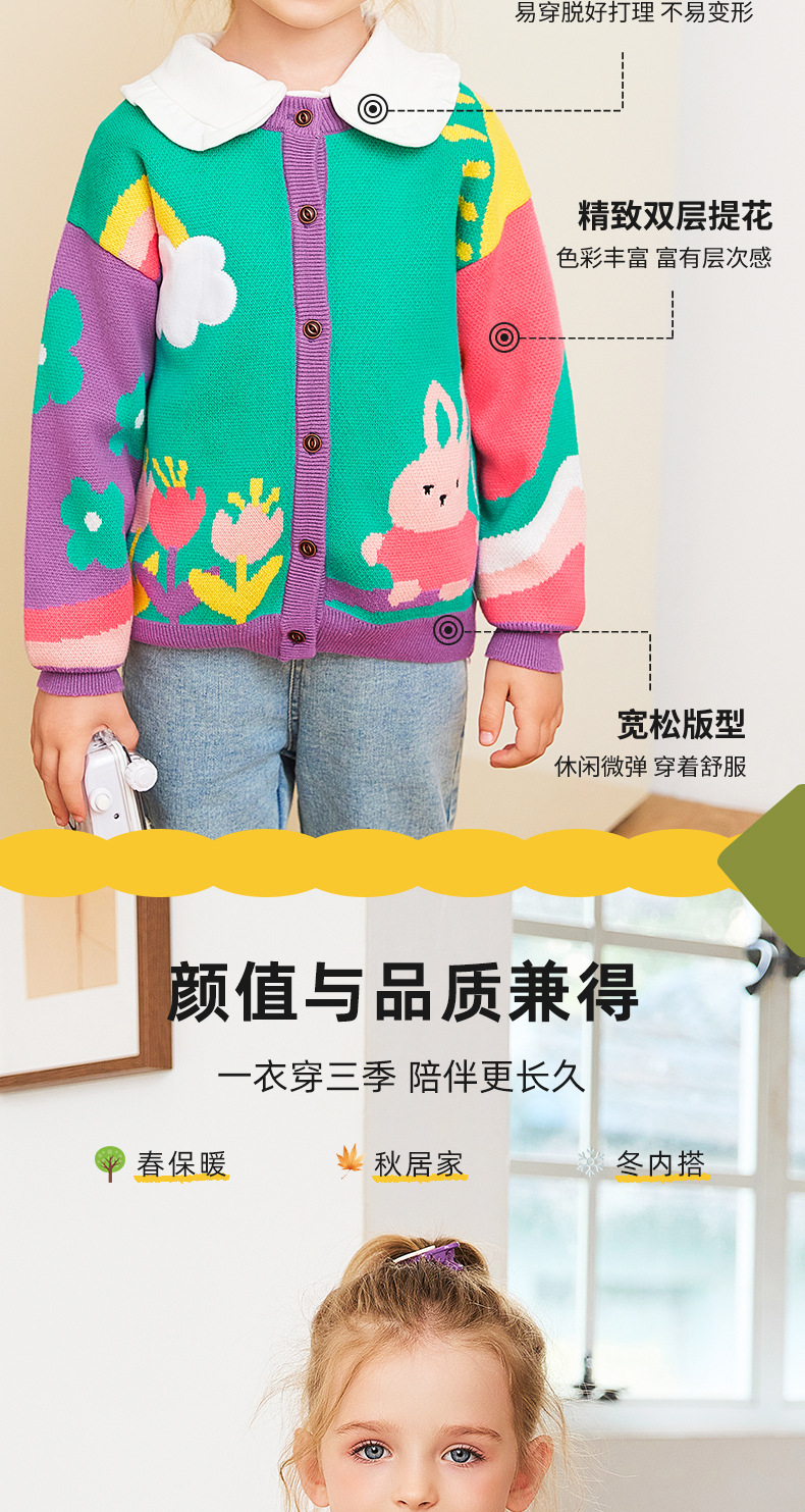 Coolwa Mi 가을, 겨울 새 여자 한국어 버전 대비 색상 만화 꽃 무지개 토끼 달콤한 아기 소녀 니트 스웨터 카디건스토어 가기