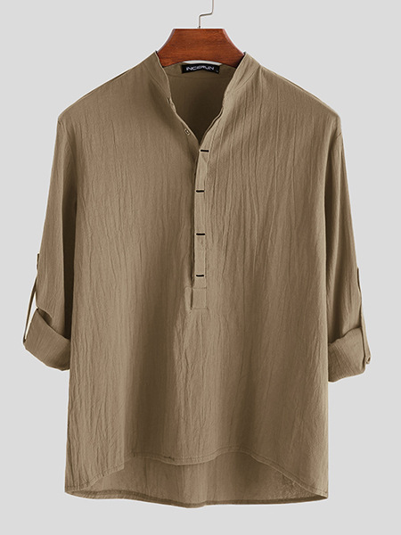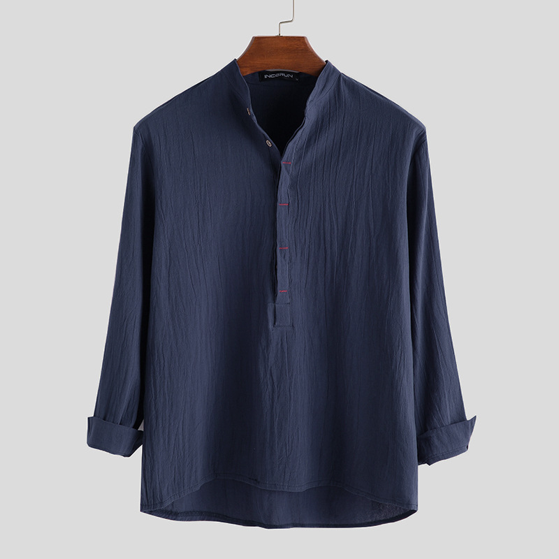 봄, 가을 외국 무역 인기 상품 동남아시아 및 유럽 남성 셔츠 캐주얼 루즈핏 단색 면마 긴팔 셔츠스토어 가기