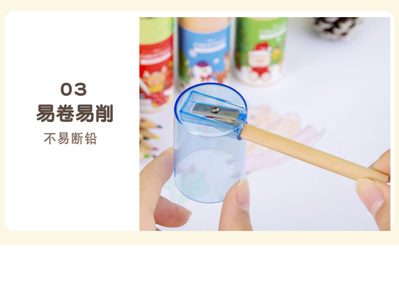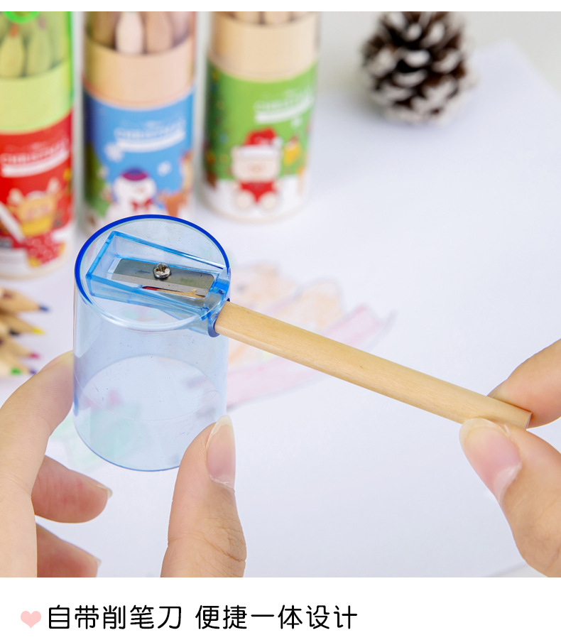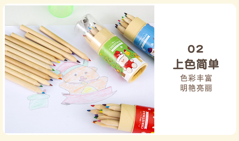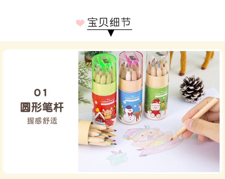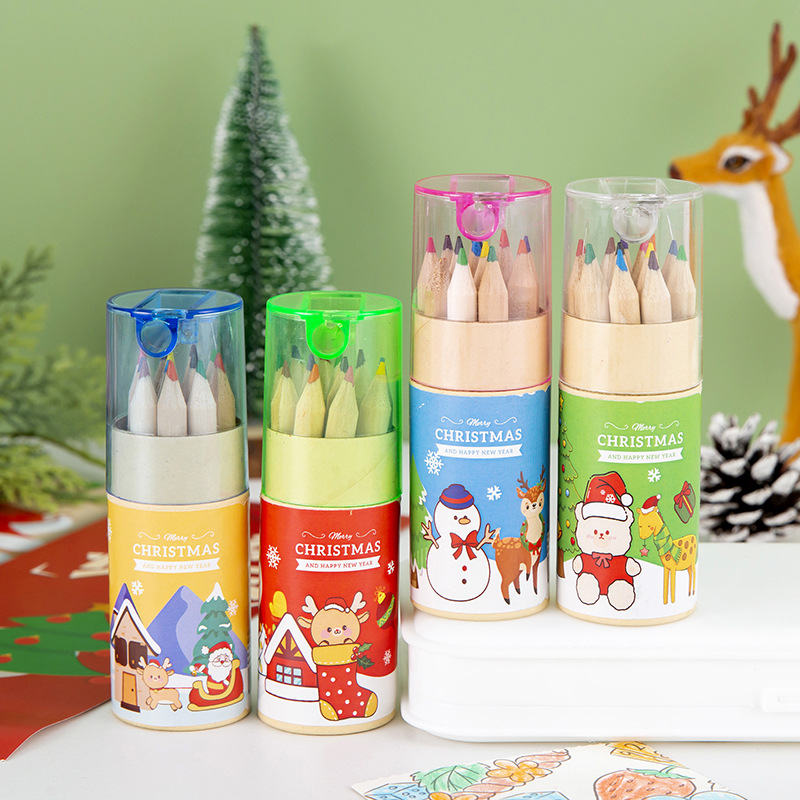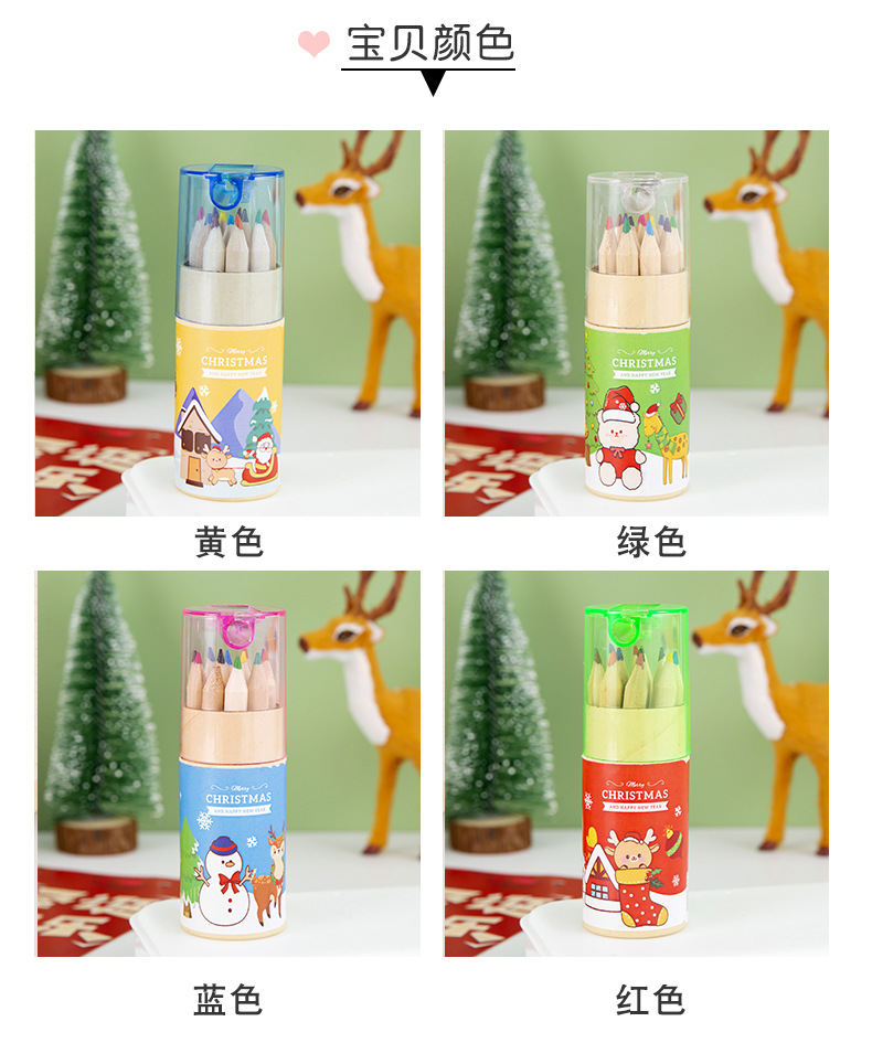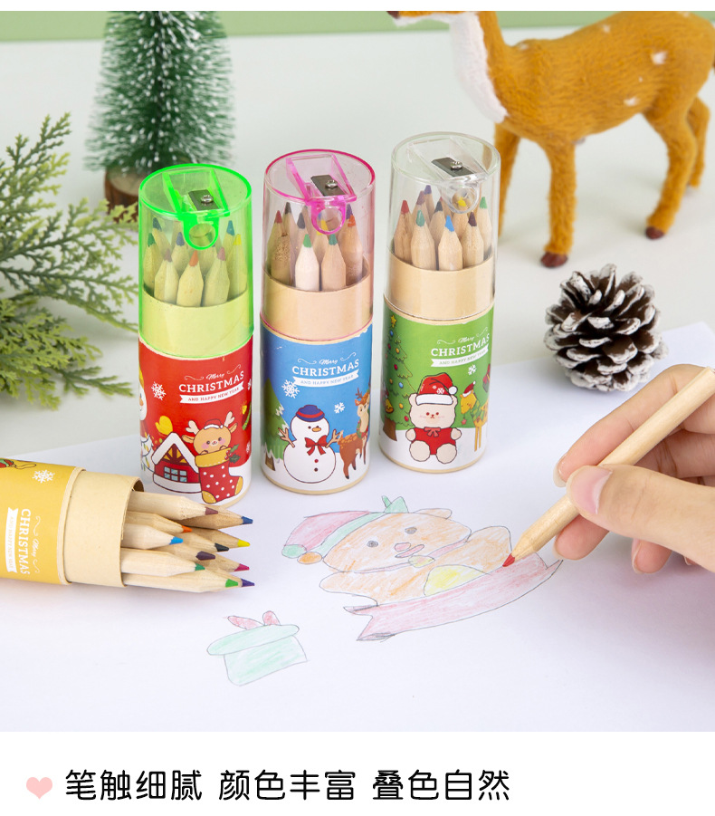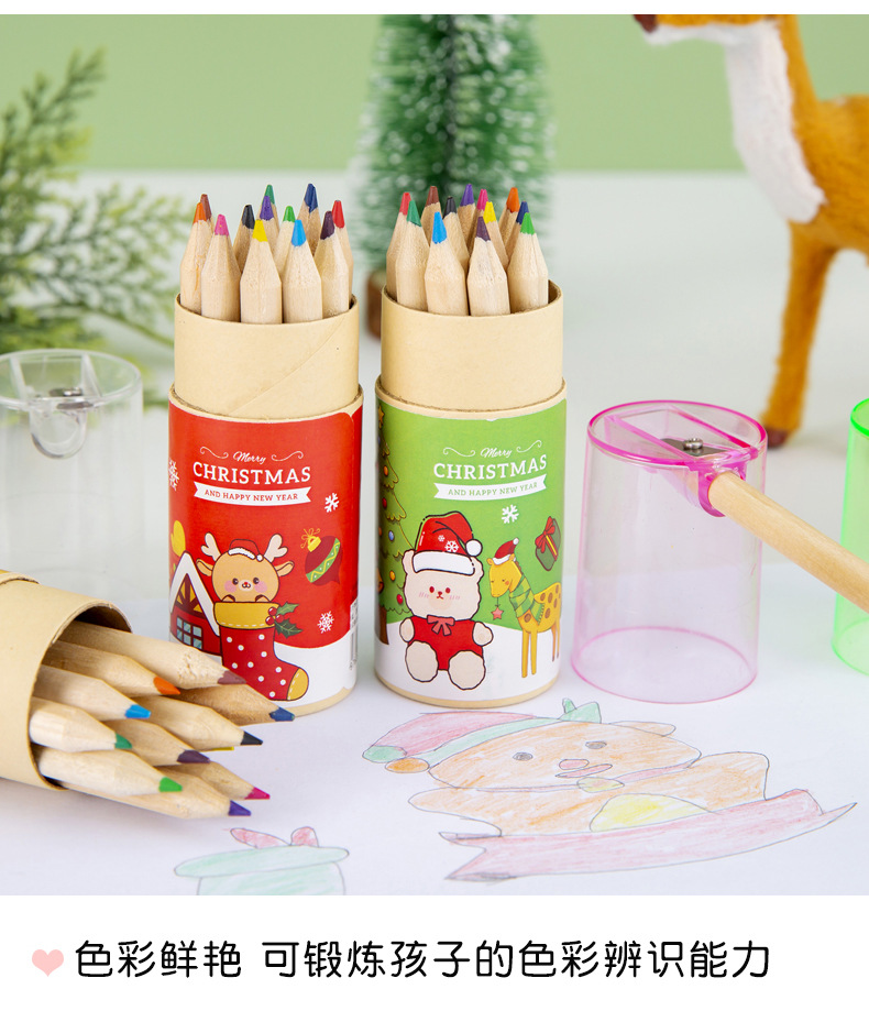 크리스마스 12 컬러 리드 배럴 어린이 그림 특수 낙서 로그 배럴 연필 창조적 인 스케치 선물 초등 학생을위한 선물