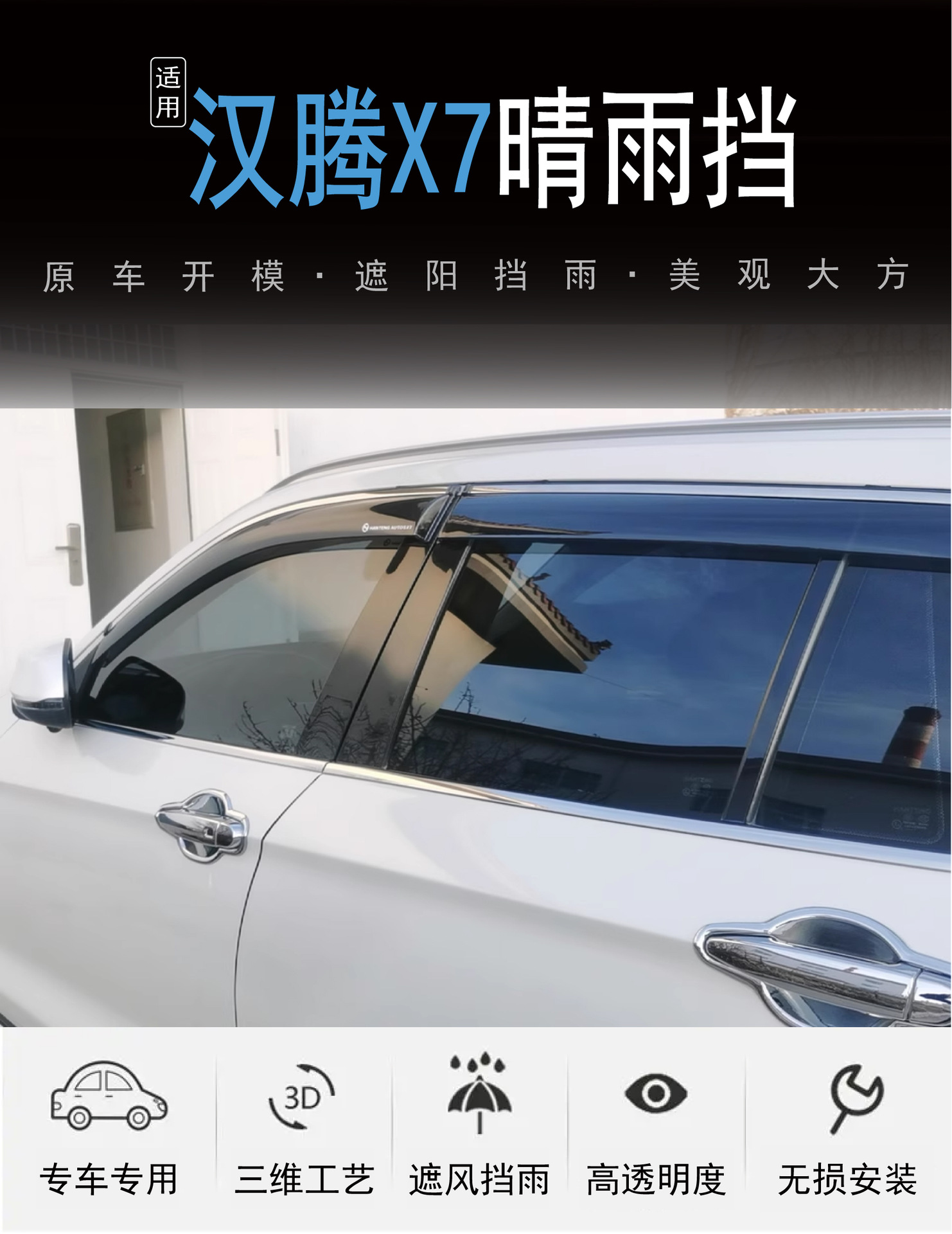 2016 Hanteng X7 자동차 창 수정 된 외부 커버 비 검은 아크릴 자동차 비 방패의 국경 간 적용스토어 가기
