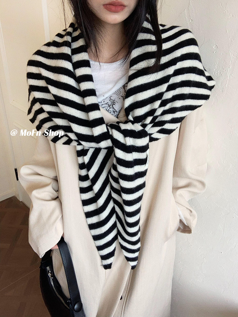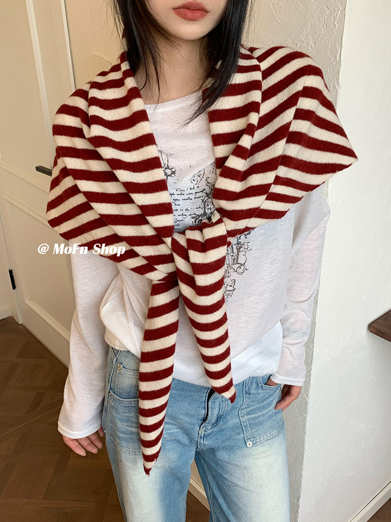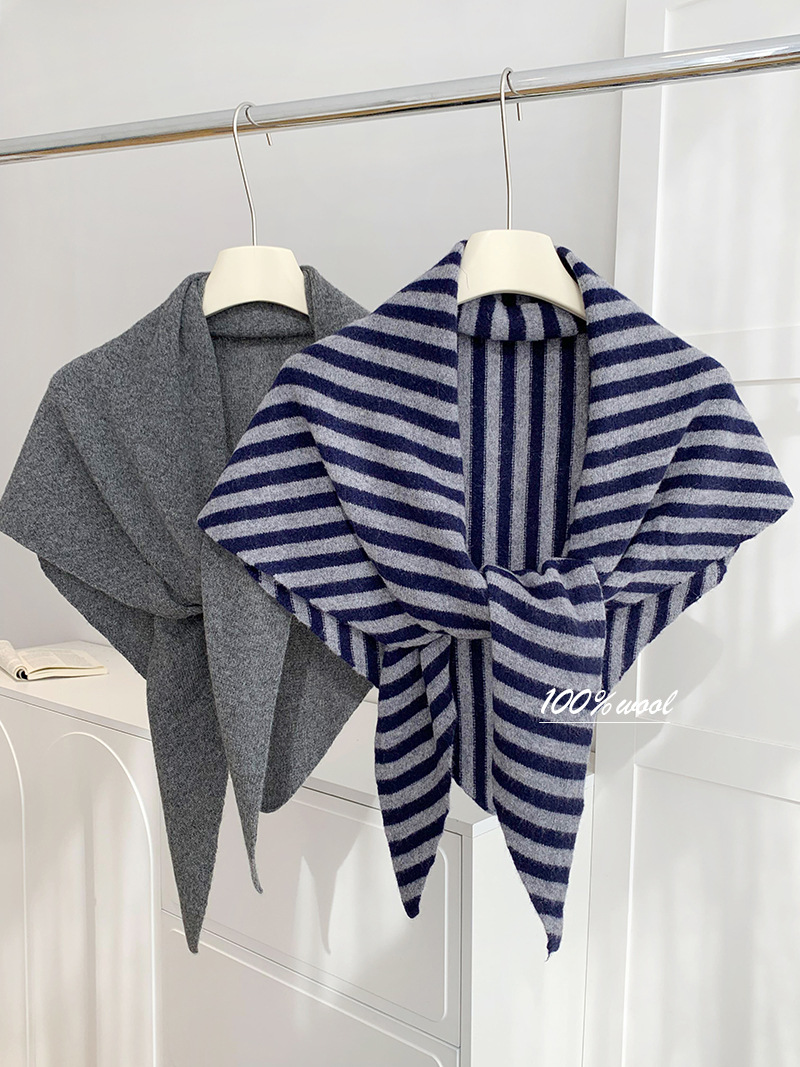 한국산 100% 순모 대형 숄 여성용 가을 겨울 보온 동대문 메리노 스트라이프 삼각 스카프