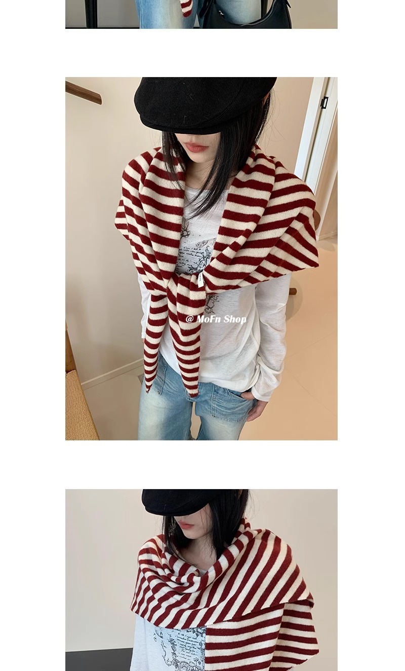 한국산 100% 순모 대형 숄 여성용 가을 겨울 보온 동대문 메리노 스트라이프 삼각 스카프스토어 가기
