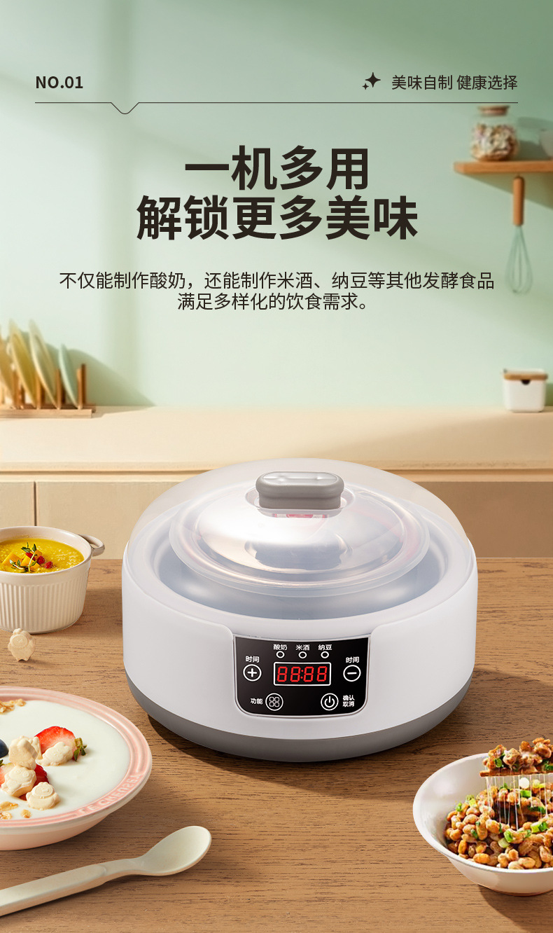 새로운 요구르트 기계 가정용 자동 작은 다기능 스테인리스 쌀 와인 낫토 지능형 일정한 온도 타이밍 요구르트스토어 가기