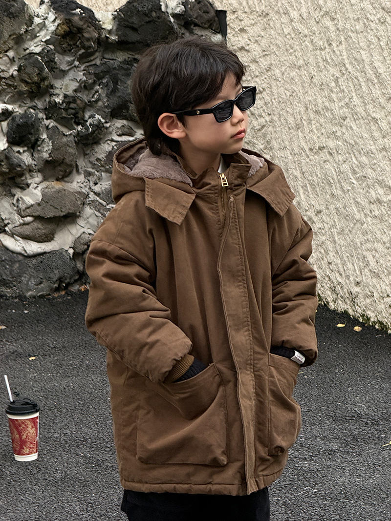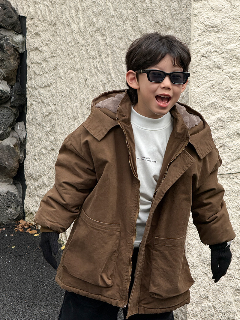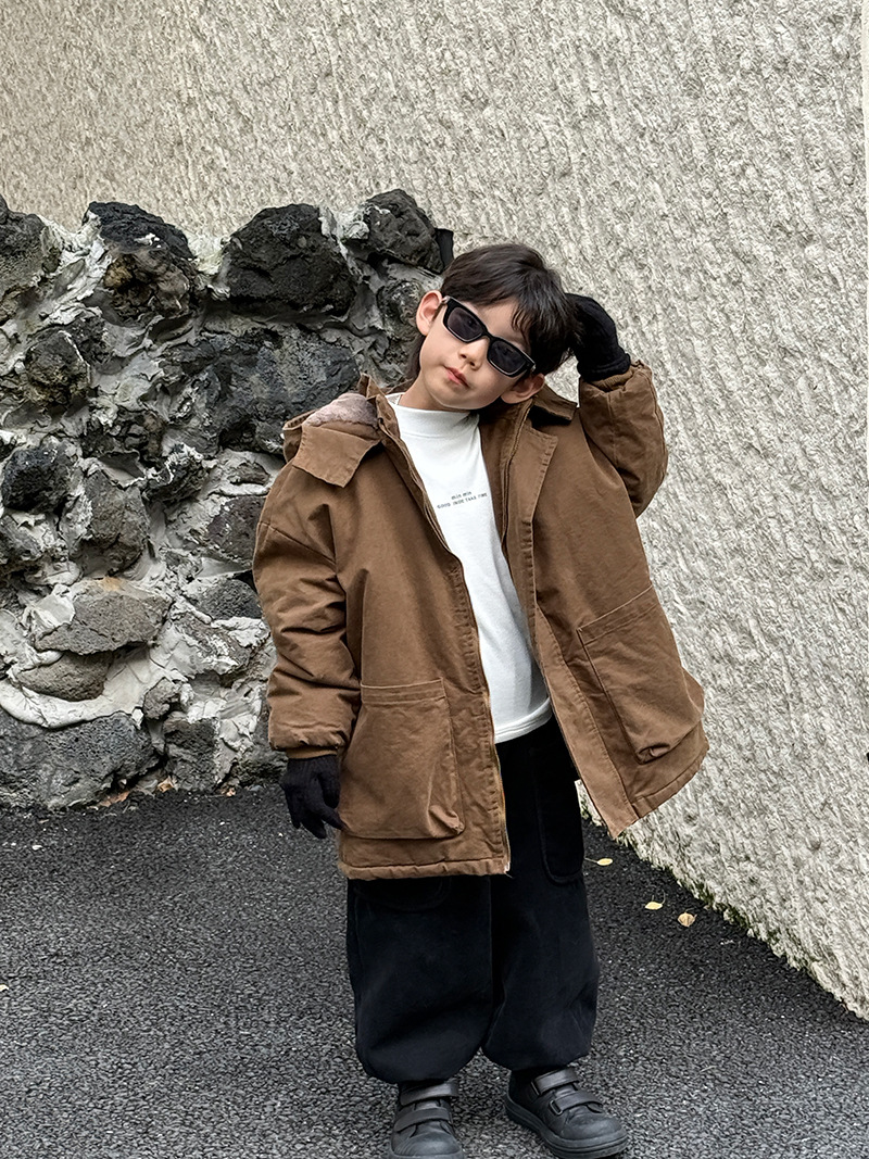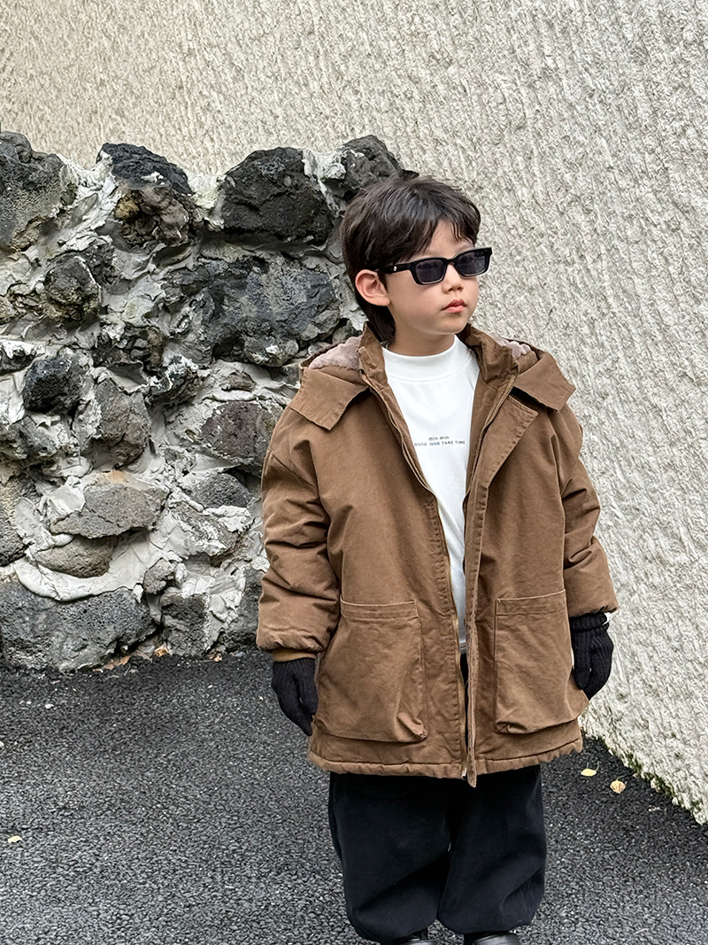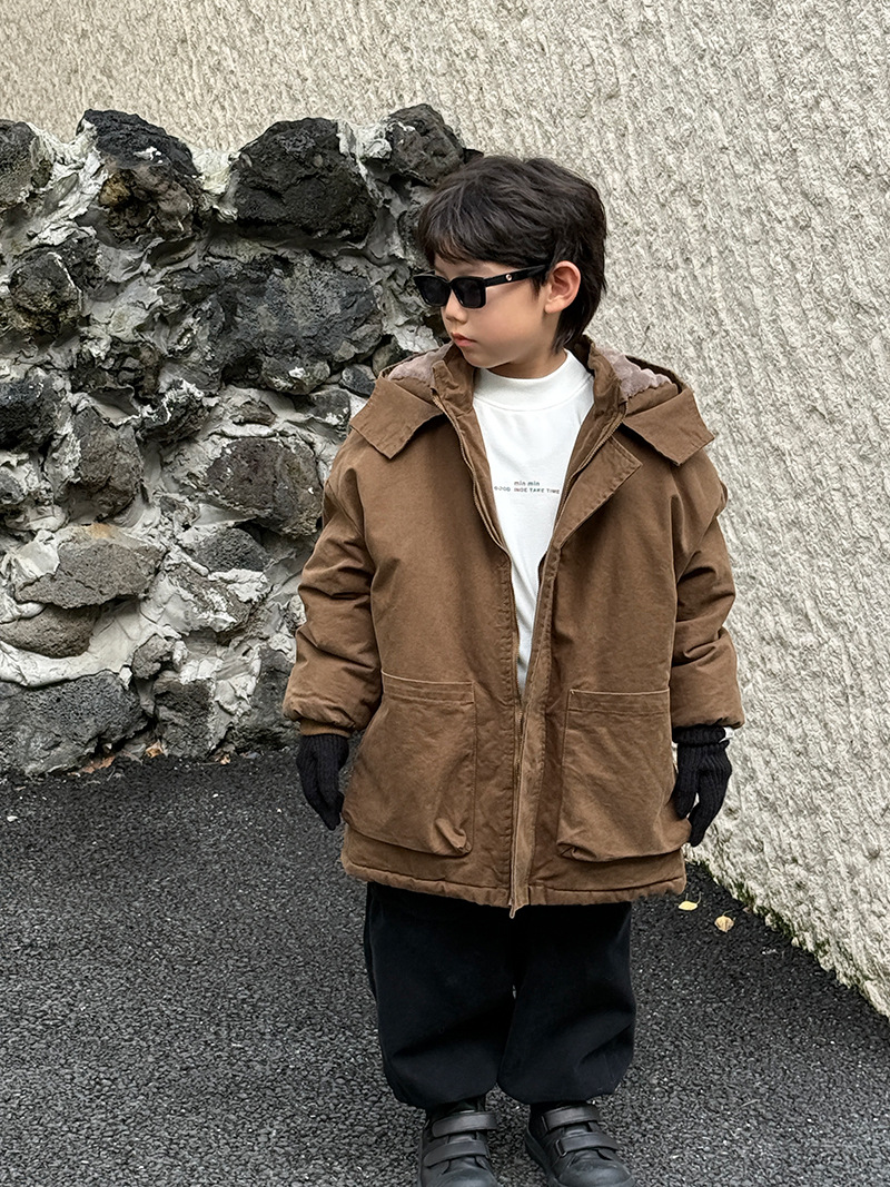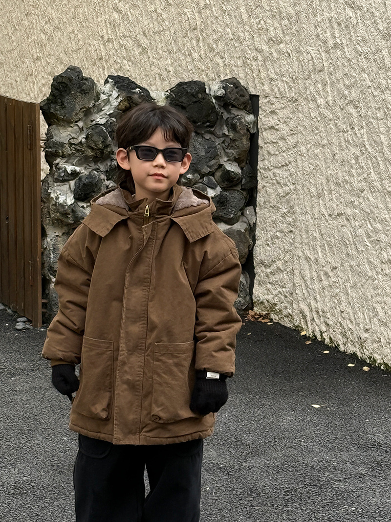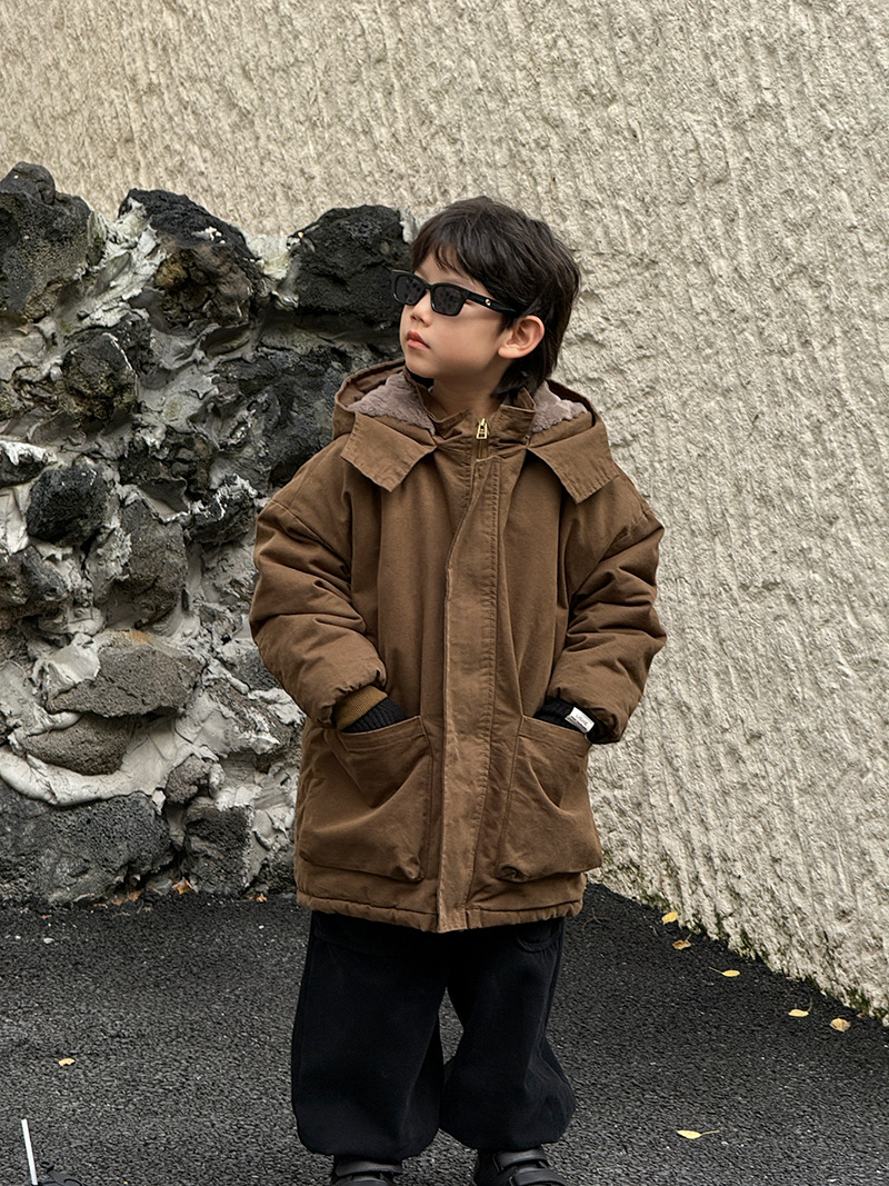 어린이 툴링 코튼 코트 24 새 겨울 기모 플러스 코튼 남성용 루즈 인 한국식 두꺼운 코튼 코트 파이크스토어 가기