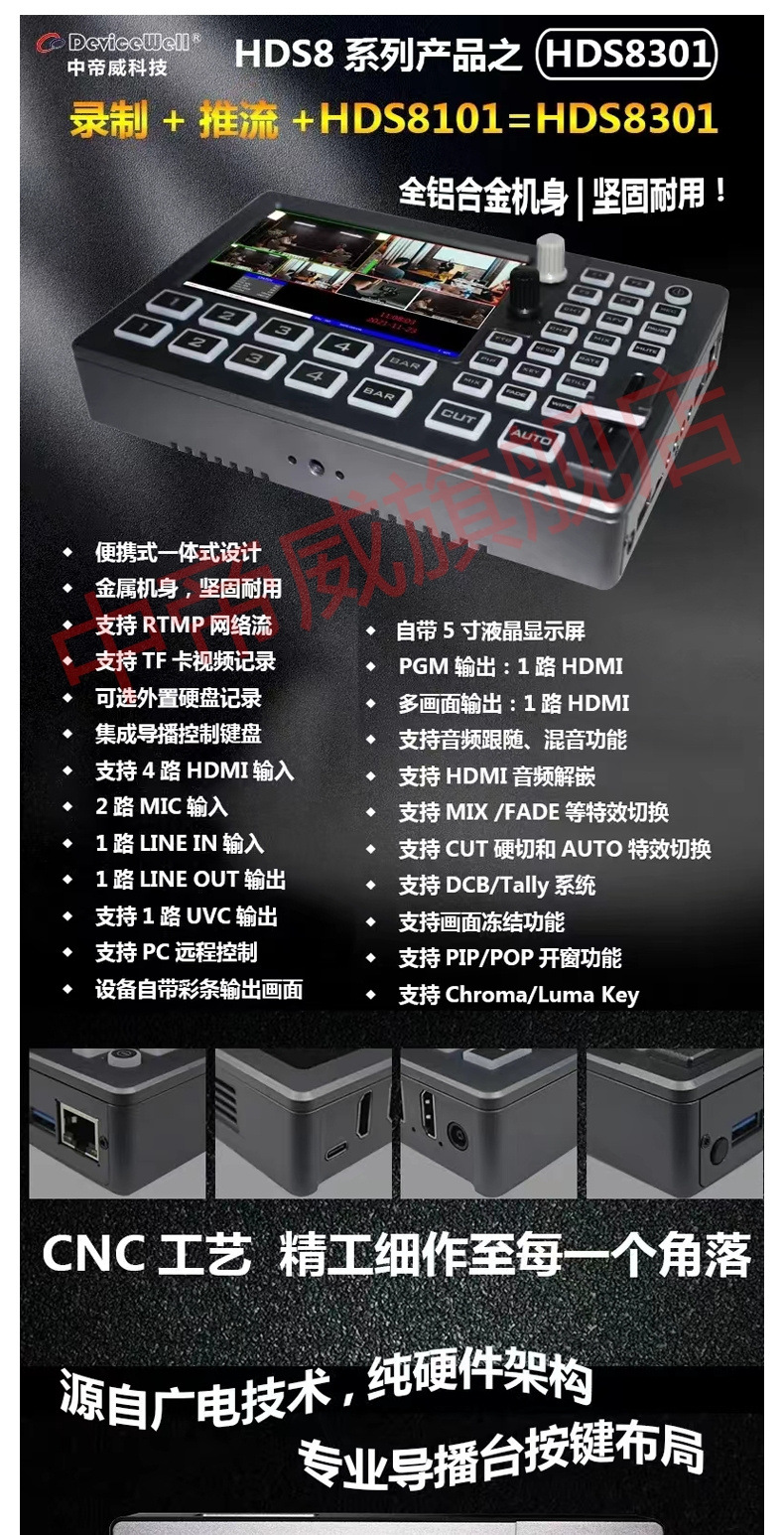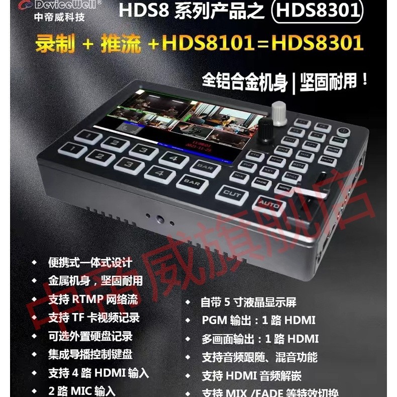 중디 웨이 HDS8301 4 웨이 가이드 스테이션 4 웨이 HDMI HD 비디오 라이브 녹화 및 방송 스위치