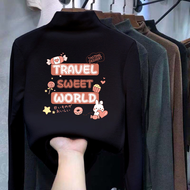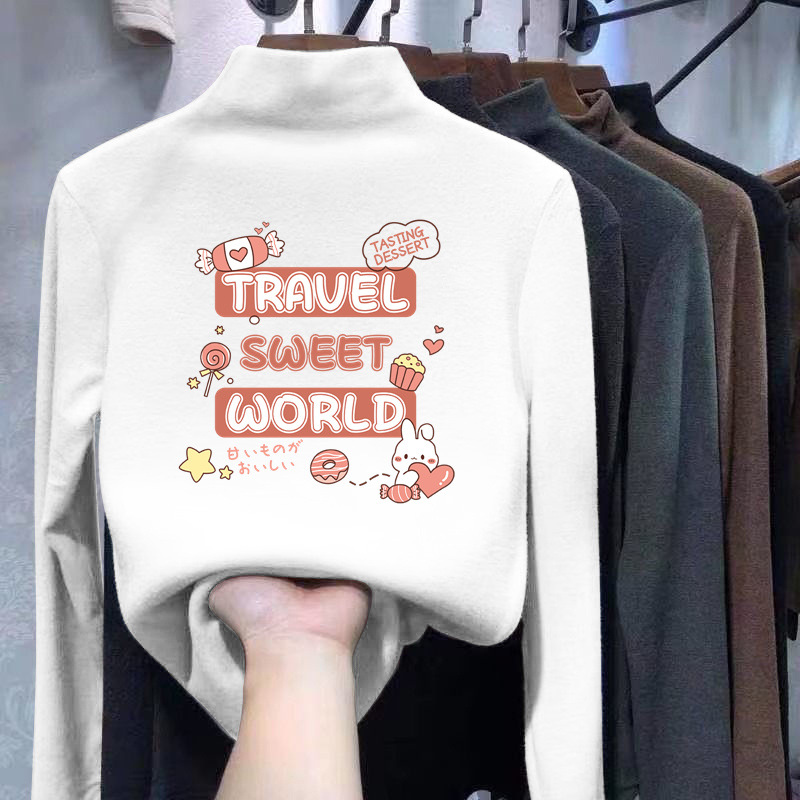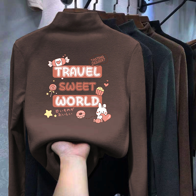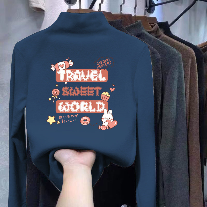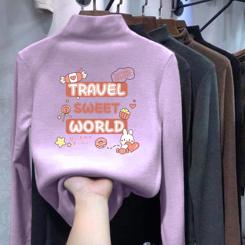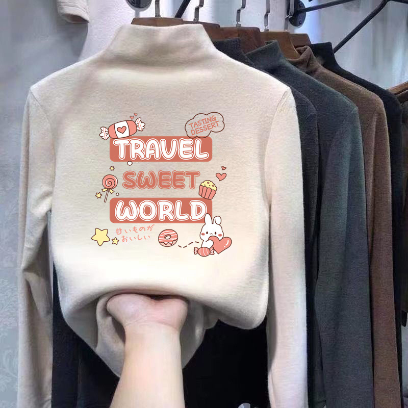 Y2118 # 남녀 어린이 양털 백킹 셔츠 가을과 겨울 티셔츠 세미 하이 넥 롱 슬리브 티셔츠 중 · 대형 어린이 두꺼운 탑스토어 가기