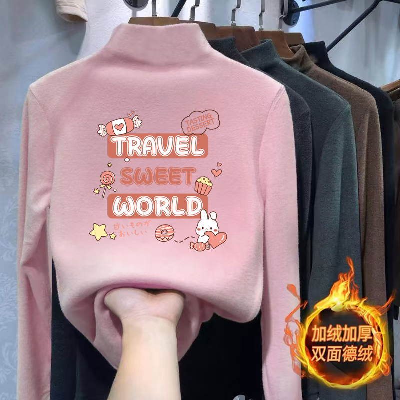 Y2118 # 남녀 어린이 양털 백킹 셔츠 가을과 겨울 티셔츠 세미 하이 넥 롱 슬리브 티셔츠 중 · 대형 어린이 두꺼운 탑