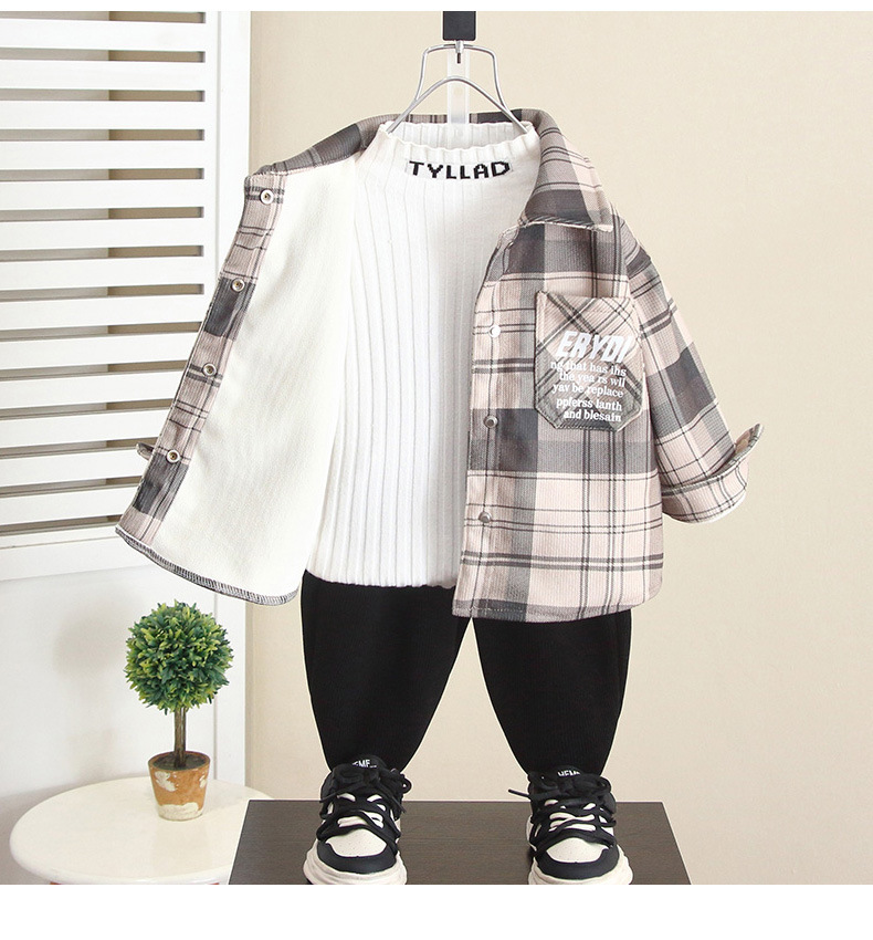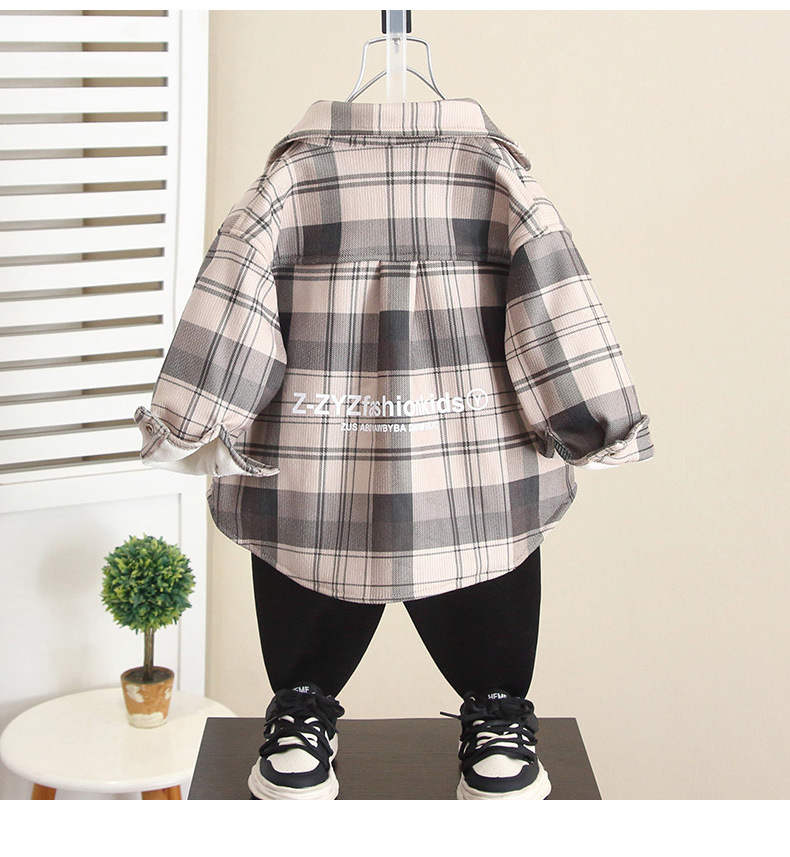 6580 소년 셔츠 플러스 벨벳 가을, 겨울 긴팔 어린이 원피스 벨벳 셔츠 2025 새로운 아기 두꺼운 재킷스토어 가기
