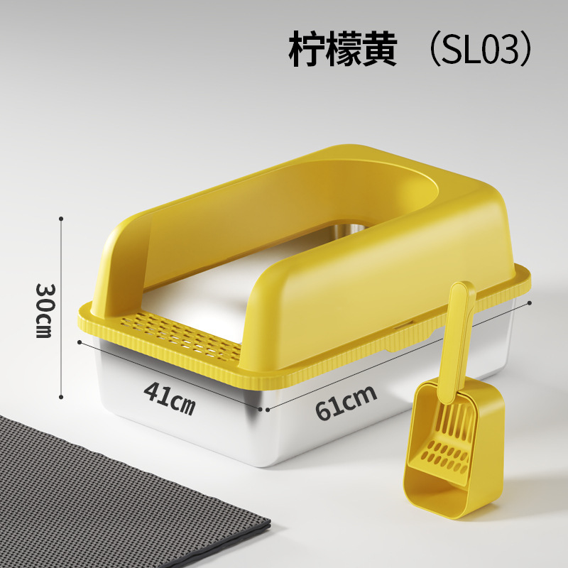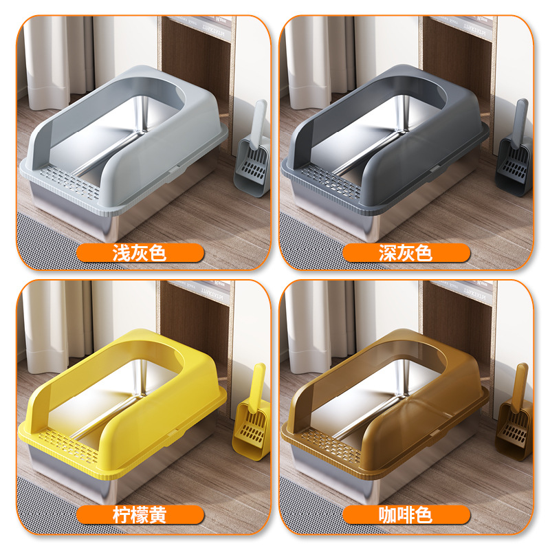 도매 스테인레스 스틸 고양이 쓰레기 상자 초대형 확대 및 두꺼운 누출 방지 모래 청소가 쉬운 개방형 고양이 화장실 안티 스플래시스토어 가기