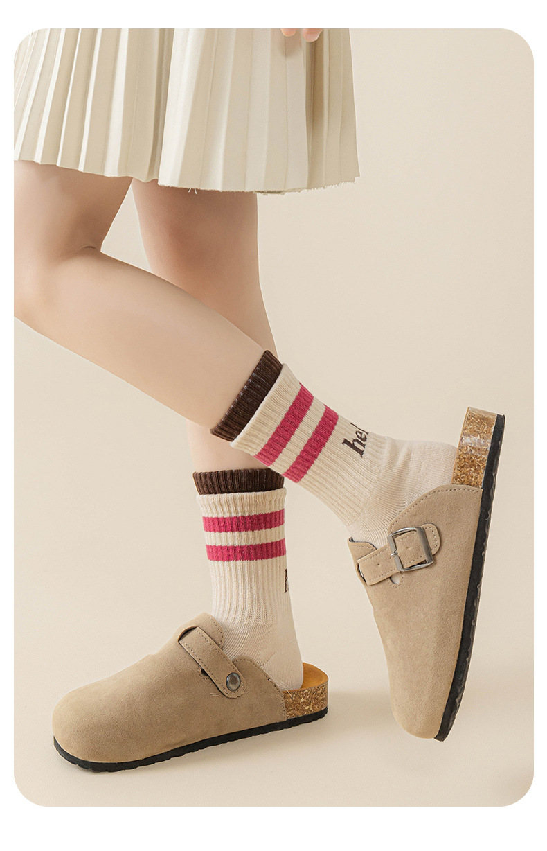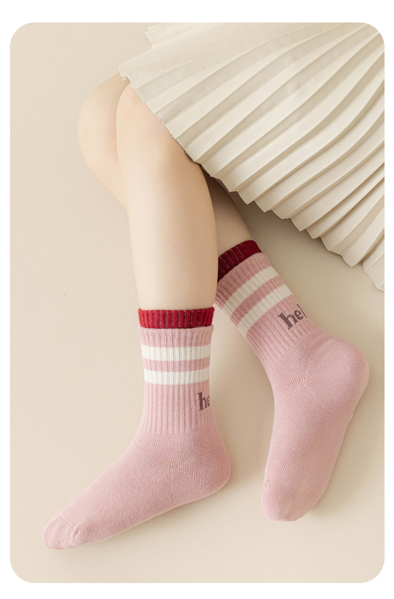 여자 양말 스포츠 땀 흡수 뼈없는 미중 배럴 긴 양말 걸스 큰 어린이 평원 더블 라쿠 가을 및 겨울 면화 양말스토어 가기